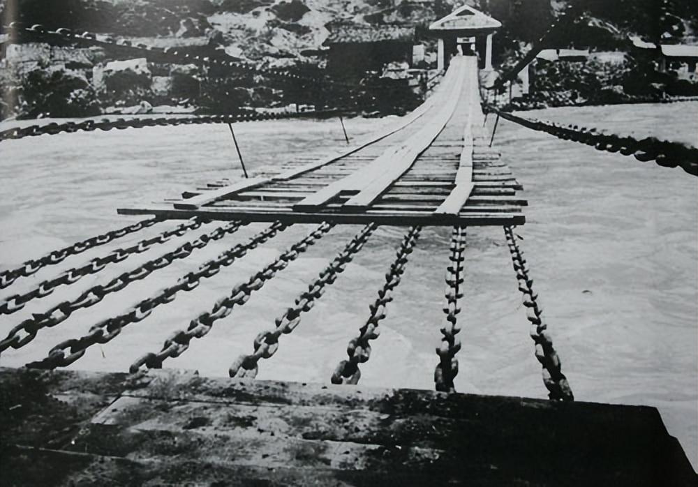宋大顺伸出手,往毛泽东身后一指:安顺场渡河是不可能的,但是往上走三百米的上游,有一座于康熙年间修建的泸定桥。