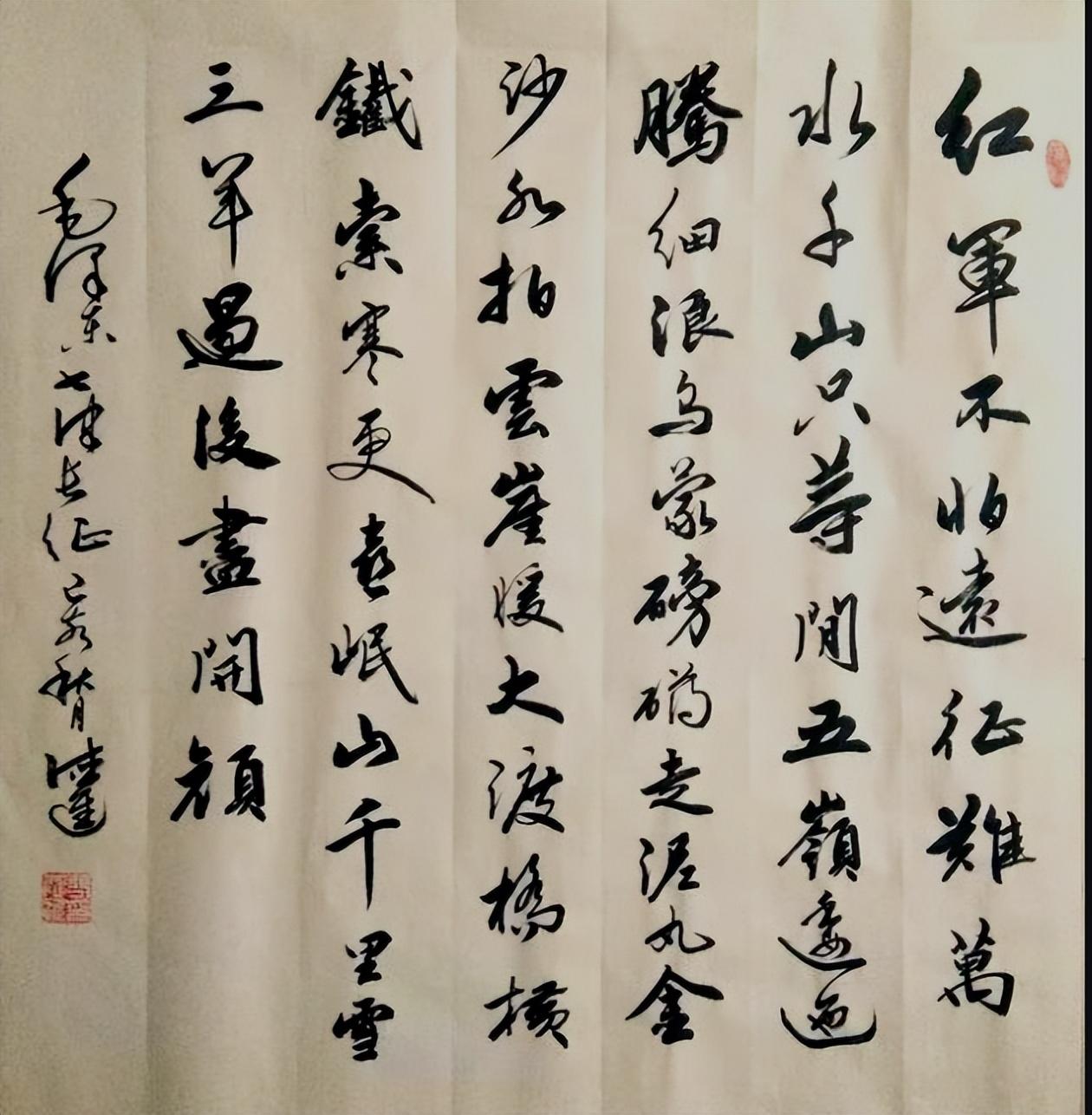 毛泽东曾在长征途中写下一首著名的《七律·长征》,其中就有当时红军杀出敌圈、抢渡大渡河的著名事迹。