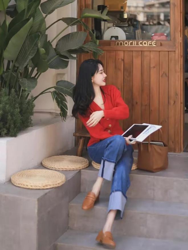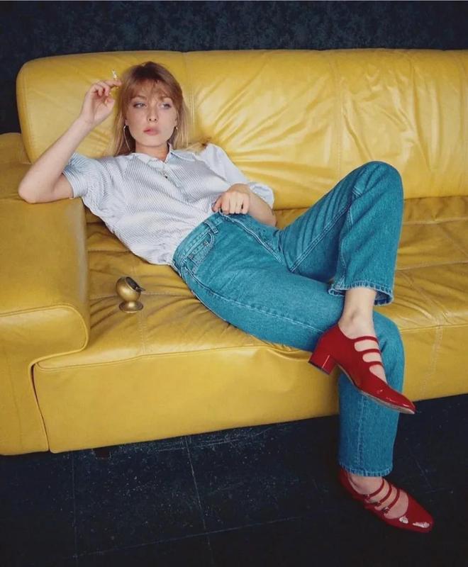 最为经典的红色玛丽珍鞋,自带法式调调,搭配牛仔裤轻松展现出穿着者的品味与时尚,超级时髦亮眼!
