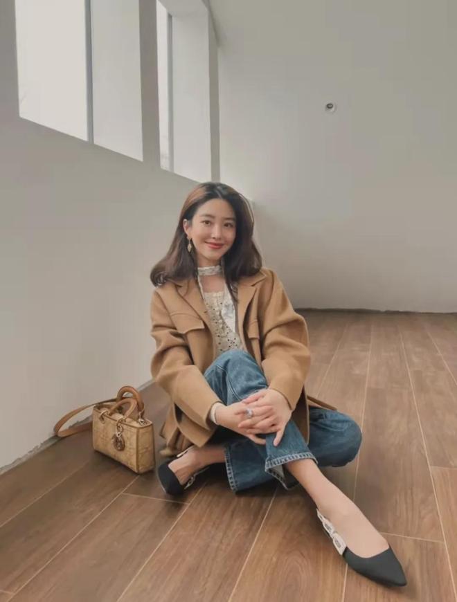 时髦精周雨彤身穿牛仔裤+乐福鞋,露出脚面,既休闲又正式,脚踝粗的人也能轻松驾驭~