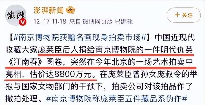 举报之后,庞叔令心里的疑团越来越大:一幅捐给南博的国宝,怎么会流入拍卖市场?是不是还有其他捐赠的文物也出了问题?