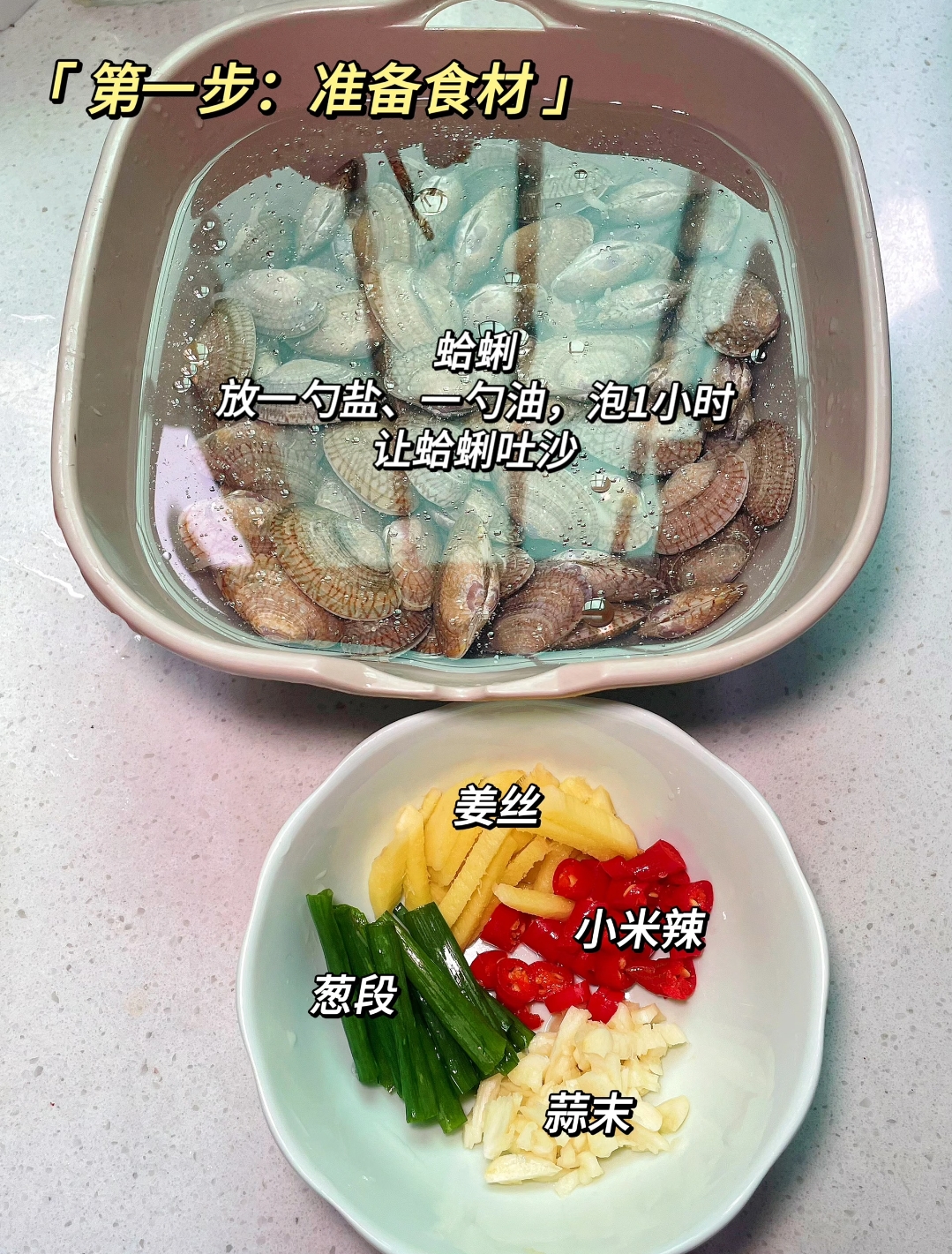 想要蛤蜊吃得放心,第一步的预处理至关重要。买回来的蛤蜊不能直接下锅,必须先让它把肚子里的沙吐干净。找一个宽敞的大盆,把蛤蜊放入其中,加入一勺盐、一勺油,再倒入足量的清水。盐能模拟海水的环境,油则能隔绝空气,这样静置浸泡一小时,蛤蜊就会乖乖地把沙吐出来。趁着泡蛤蜊的时间,我们可以准备灵魂料汁,这是决定这道菜味道浓郁与否的关键。取一个小碗,加入一勺半生抽提鲜,一勺蚝油增香,一勺白糖提味中和咸度,再来一勺老抽上色,为了让酱汁能更好地挂在蛤蜊上,还需要加入一勺生粉和半碗清水,用筷子充分搅拌均匀,一份浓稠适宜的万能炒菜料汁就调好了。