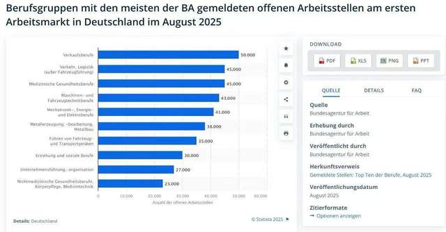 数据显示,2025年8月共有数十万空缺岗位向BA报告,岗位需求居高不下,反映出德国经济转型和社会发展的多重压力。