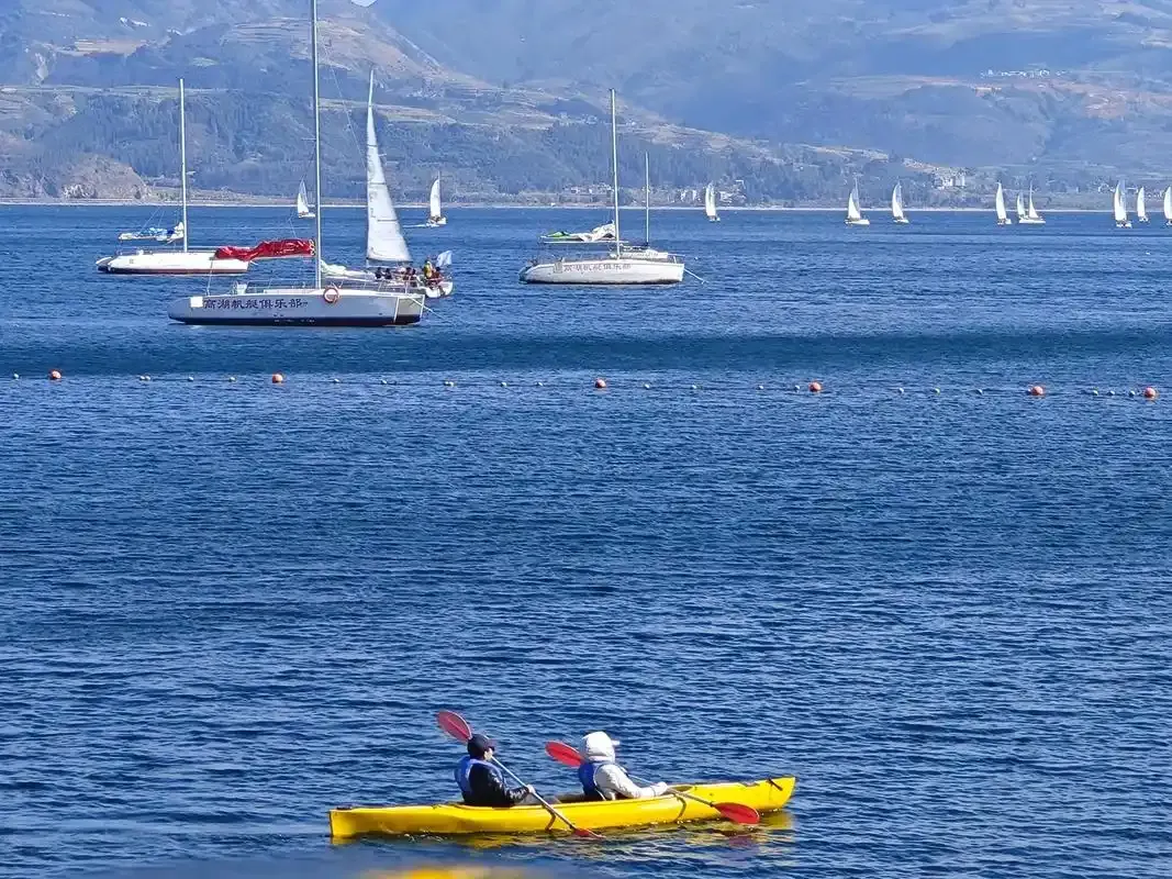 再看抚仙湖,它看着就“小巧”多了,面积才216.6平方公里,连鄱阳湖的1/15都不到,就像个“小不点”。但你们可别被它的大小骗了,它的蓄水量直接拉满,高达206.2亿立方米,要是赶上鄱阳湖枯水期,它的水量能是鄱阳湖的20倍左右!更厉害的是,它一个湖的蓄水量,就占了咱们全国淡水总储量的9.2%,差不多近十分之一,而且它还是珠江源头的第一大湖,属于珠江水系南盘江分支,地位特别重要,被称为“玉溪的眼睛、云南的名片”可不是吹的。