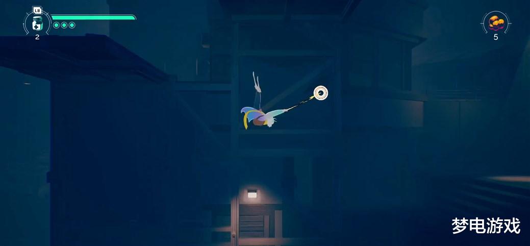 在从一个节点荡到另一个节点的过程中并没有锁定瞄准,比较考验时机,游戏内存在不少失误就从头再来的场景,加上本作不算太好的蹬墙跳与攀爬边缘手感,前期体验是相对糟糕的,在中后期逐渐解锁能力提高性能后才会进入高速爽的平台游戏体验。
