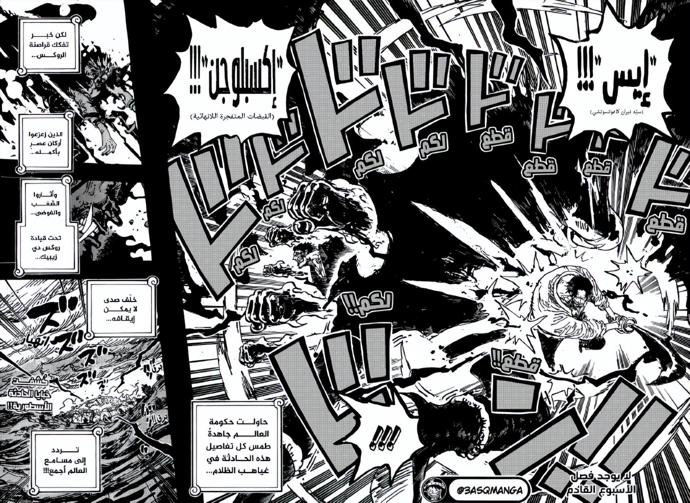 而且我们还缠绕了“霸王色”,不应该不起作用啊!卡普:那还不是因为,对面也用“霸王色”防御嘛,两者相互抵消——罗杰:所以说啊!!不超越对方(防御的)力量的话,就无法造成伤害!!罗杰:像这样一步步相互削减体力,最后肯定会输,我们的体力不可能与那个怪物相匹敌卡普:所以要以最大质量的“霸王色”轰过去吗!?罗杰:没错!!那之后的体力就不考虑了!!卡普:那么做的话,可没法活着回去啊…!!罗杰:如果(这招)能决出胜负,我们三个人都会无法战斗……卡普:而失败的话,我们就完了…卡普:喂,洛克斯!我不知道该怎么安慰你!!也不知道你身上究竟发生了什么!!——但是唯独……!!你的痛苦,我能明白!!(注:日语原文是“无念”)罗杰(捂脸):别哭了,笨蛋…!!“火之迦具土(Hi no kagutsuchino)”卡普:“无限(Infinitum)”罗杰:“慧士(Ace)”!!!卡普:“拳骨(Explosion)”!!!旁白: 【世界政府试图将整个事件埋藏在黑暗之中……但由洛克斯D吉贝克所统率,搅乱一个时代的无序集团,洛克斯海贼团的崩溃…还是化作一股无法掩饰的残响…震撼了世界……!!】本话完,下周休刊。编者按:传说事件的全貌。