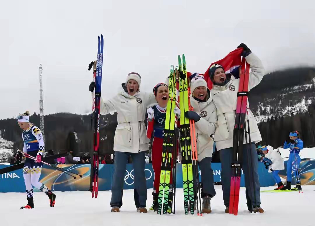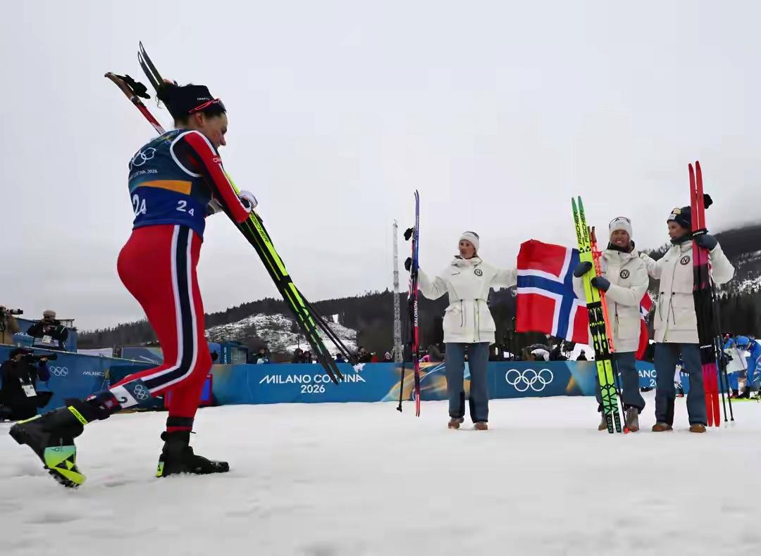当地时间2月14日,2026年米兰冬奥会越野滑雪赛场迎来了备受瞩目的女子4×7.5公里接力比赛。作为越野滑雪项目中极具观赏性与团体战术价值的赛事,这场接力大战吸引了全世界的目光。在风驰电掣的竞逐中,传统强队挪威队凭借全程零失误的完美表现,以1小时15分44秒8的优异成绩强势夺冠。而夺冠大热门瑞典队因第二棒的致命失误遗憾错失金牌,最终落后50.9秒获得亚军,芬兰队则以落后1分14秒7的成绩摘得铜牌。在这场高水平对决中,由迪妮格尔、池春雪、何凯乐、王运迪组成的中国队,尽管最终以第19名的成绩完赛,位列所有参赛队伍的最后一位,但四位姑娘在赛场上展现出的虽败犹荣的拼搏精神,依然赢得了观众的尊重。