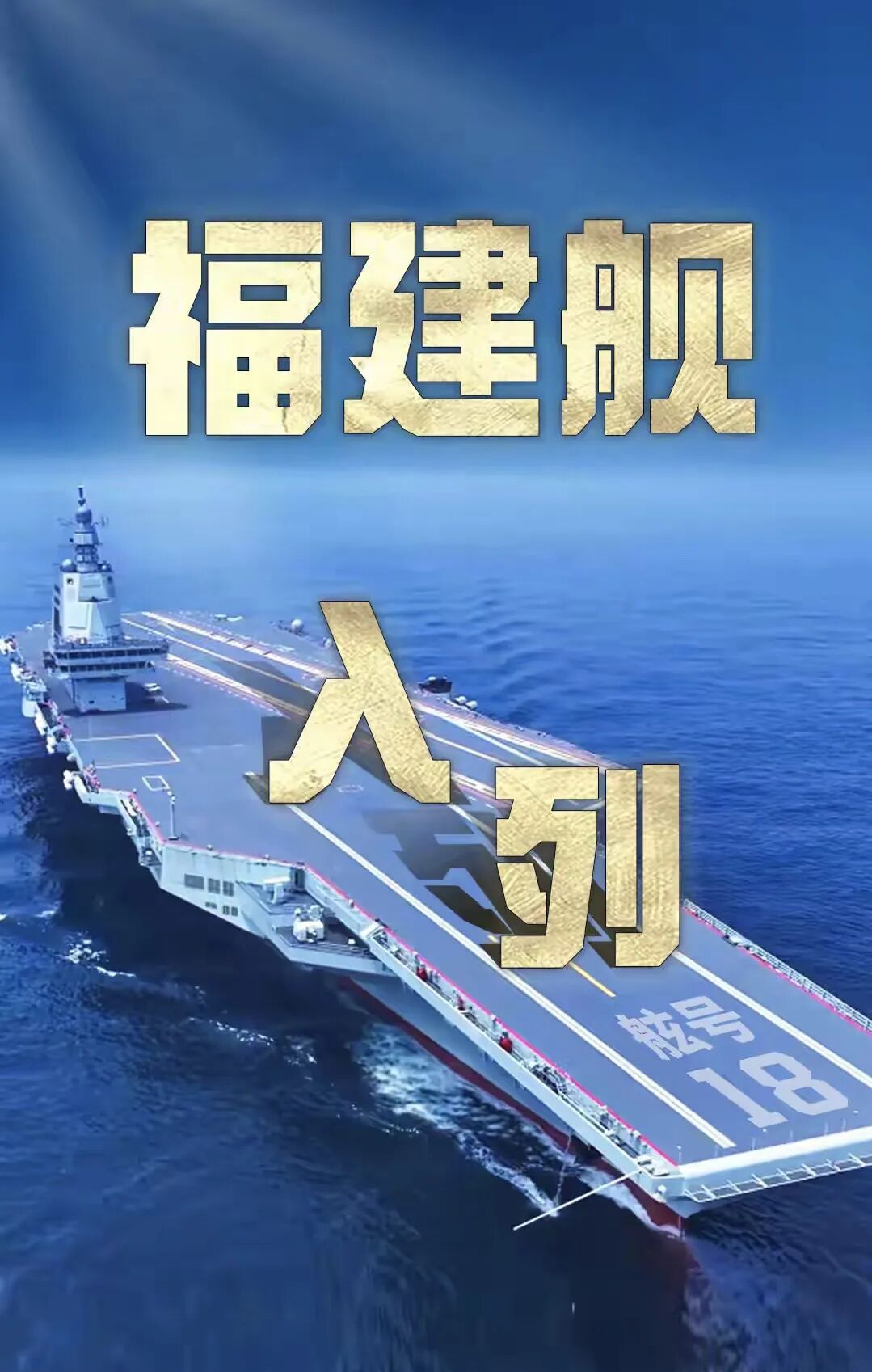 2022年6月17日,中国第三艘航空母舰003型福建舰在上海江南造船厂下水命名,舷号18,2025年11月5日正式入列服役。福建舰是中国第三艘航空母舰,也是第二艘国产航空母舰,也是第一艘电磁弹射型航空母舰,是全世界首艘常规动力电磁弹射型航空母舰,并且电磁弹射技术处于世界领先水平。