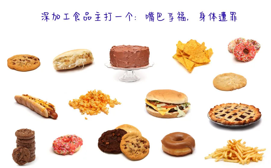 精致糖、人工甜味剂反式脂肪、饱和脂肪添加剂、乳化剂盐超标它们一块儿搞破坏,没少干坏事。