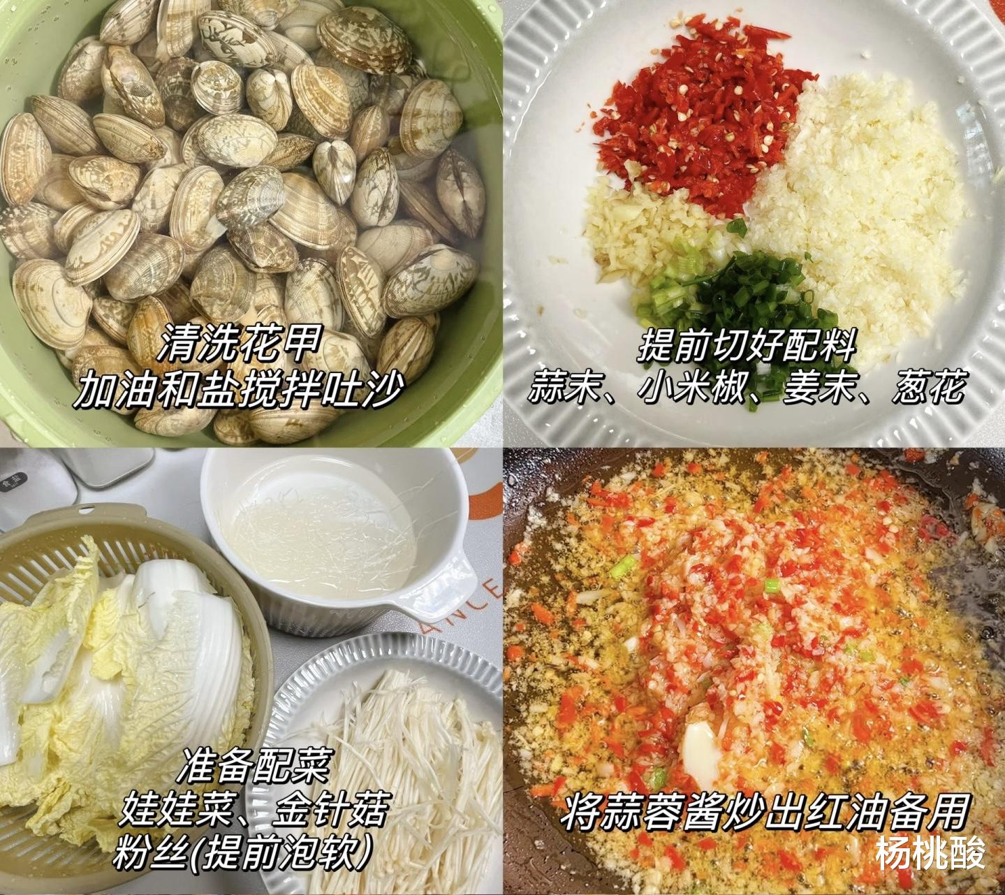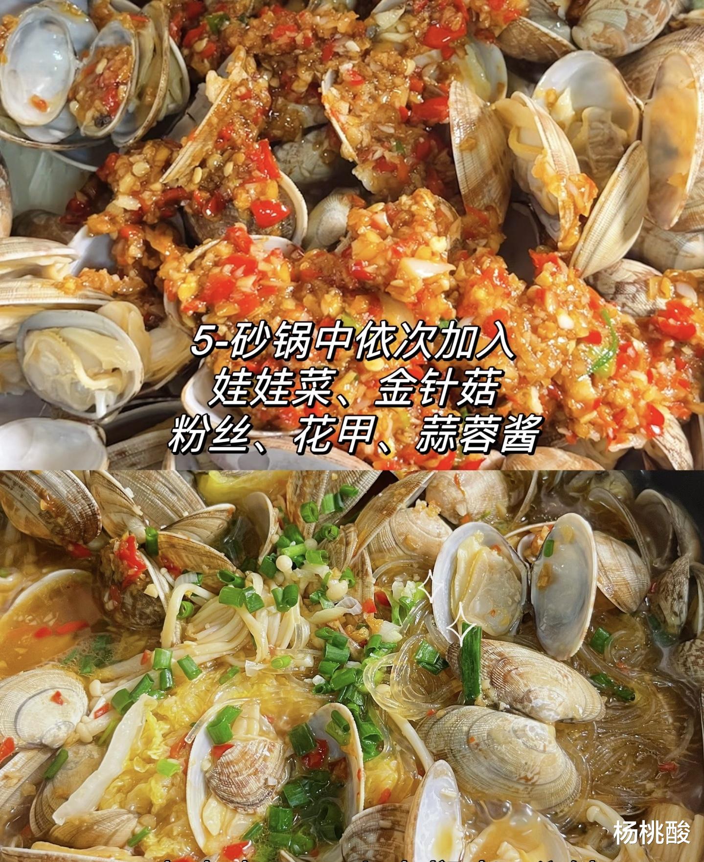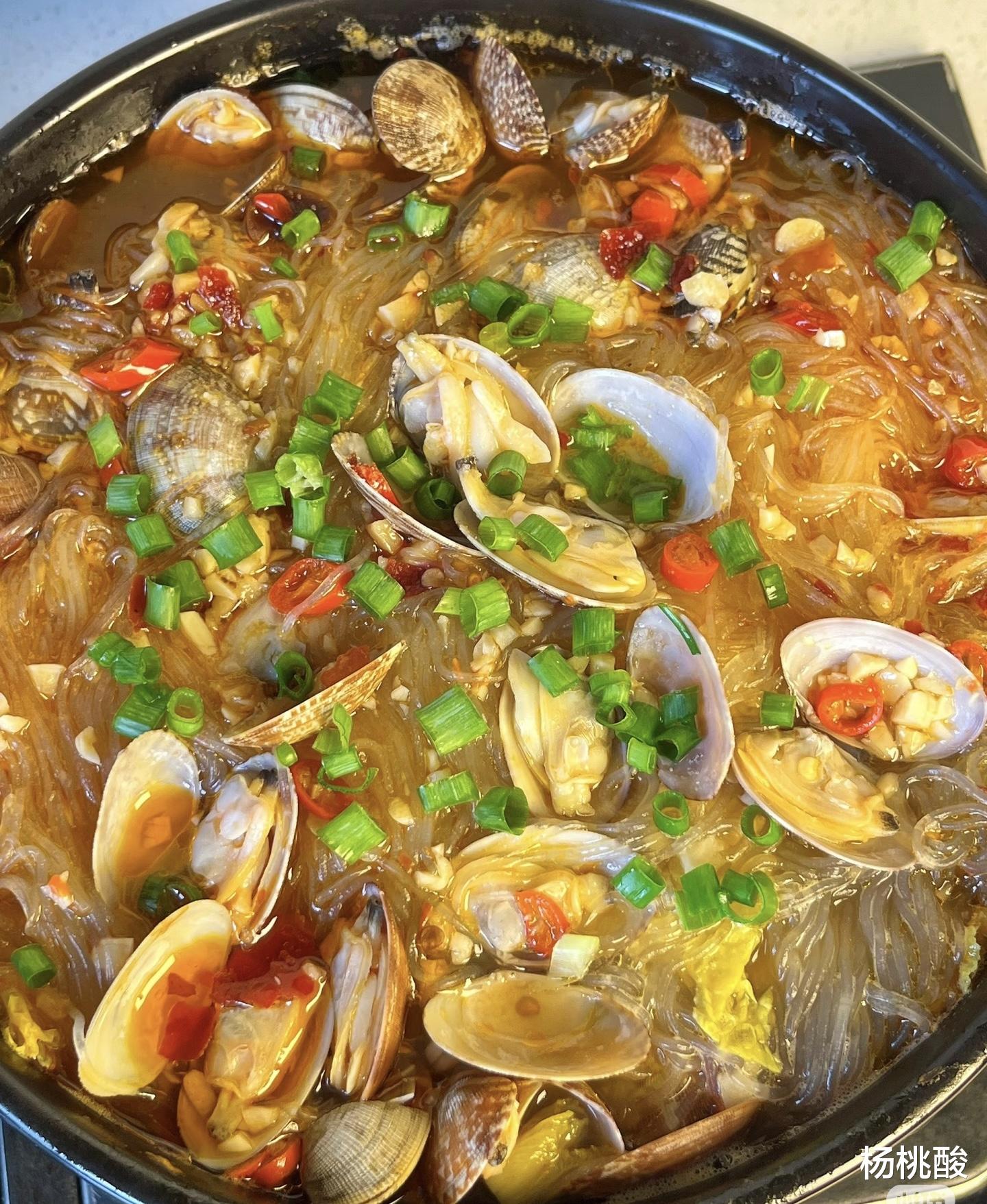 盖瞬间,香气扑鼻而来。此时可根据口味撒入葱段,轻轻翻拌均匀,再煮一分钟即可关火。一锅色香味俱全的花甲粉丝煲就完成了——红亮的汤汁包裹着晶莹剔透的粉丝,花甲在热力作用下纷纷张口,仿佛在向你招手。夹一筷子送入口中,粉丝滑嫩有弹性,花甲肉质紧实、鲜甜多汁,辣而不燥,香而不腻,让人忍不住一口接一口。