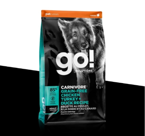 GO是(GO!Natural Pet Food)隶属于加拿大Stella&Chewy’s公司的狗粮品牌,定位为中高端狗粮,专注于生产高品质的天然宠物食品。主打“无谷物”“高蛋白”“无添加”等健康标签,初衷是为宠物提供更健康、更接近原始饮食结构的食物选择。这款狗粮的主要原料为鸡肉粉、火鸡肉粉、三文鱼粉,搭配去骨鸡肉、去骨火鸡肉、去骨鳟鱼组成了肉粉+肉类的混合肉源,肉类原料比较丰富,能够满足狗狗的原始食肉本能。粗蛋白为34%,粗脂肪为16%,营养比较充足,同时还添加胡萝卜、西蓝花等天然果蔬,以及甘草、蒲公英等草本植物,帮助增添狗粮营养价值的同时抗氧化清热,帮助狗狗维护体质健康。