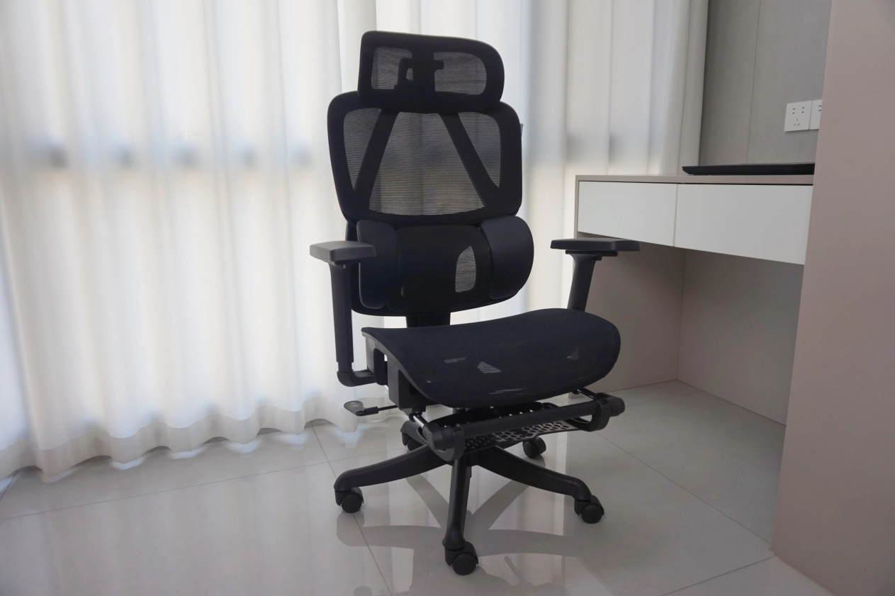 支撑性:坐垫弹性柔软但支撑明确,腿部可升降伸展,整体坐感舒适均衡,支撑力度稳固,长时间办公不易疲劳。