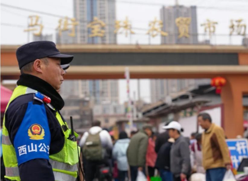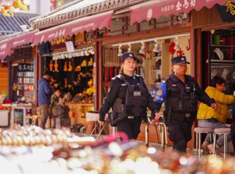 时针轻摆,新岁序章已然开启。站在西山龙门,凭栏远眺,阳光洒向红土高原,五百里滇池,奔来眼底。从茶马花街到金马碧鸡,人潮涌动间,处处可见那抹藏蓝色的身影。这份守护,予人满心安稳。