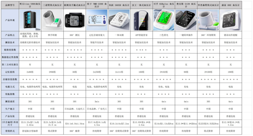 看完前面的选购技巧,你是不是也像我之前那样,知道方法但还是难选?为方便大家直观挑选,我测了10款常见血压计,都是真实使用体验,希望帮你省点纠结时间~