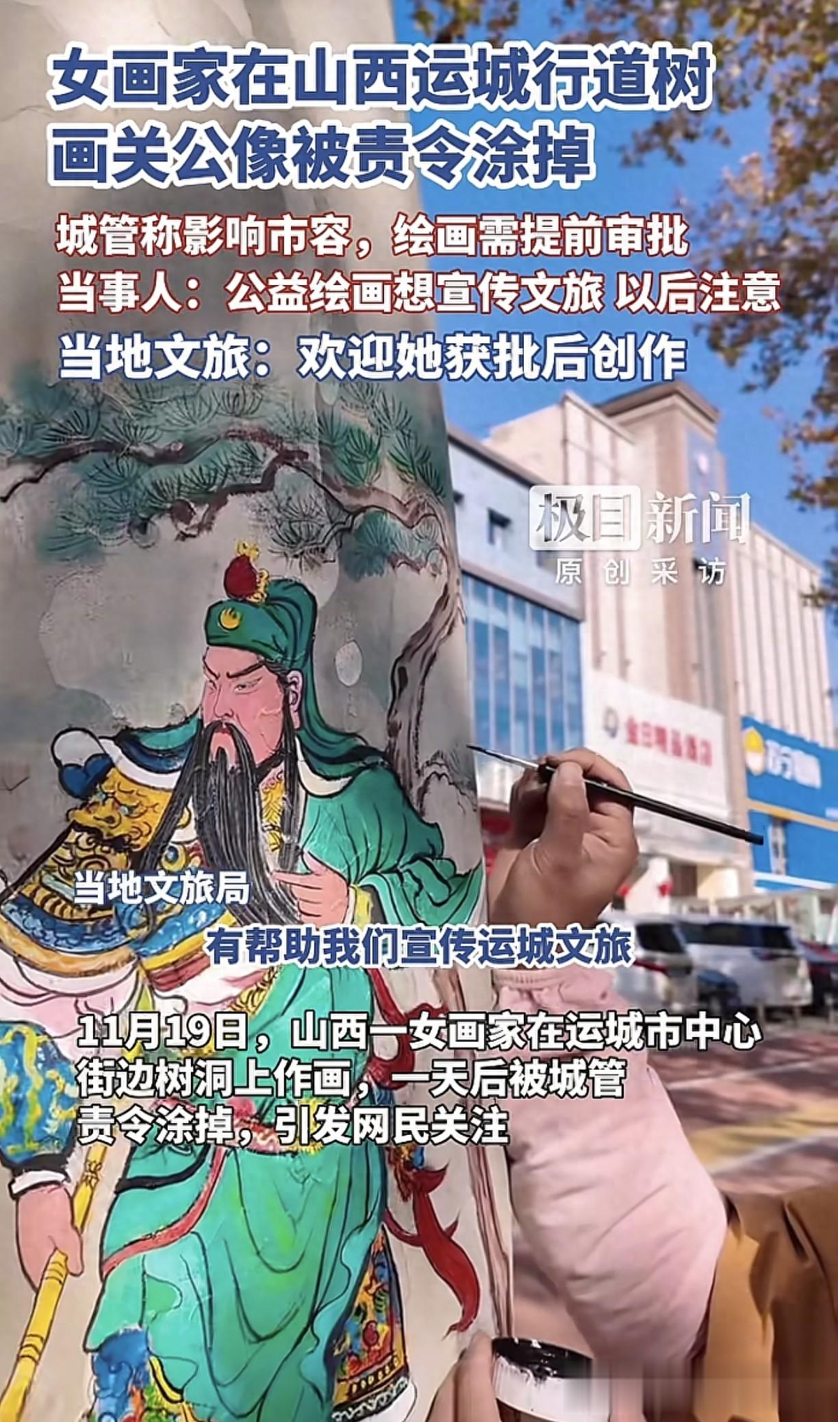 面对女子的疑问,运城文旅也做出回应,并不是不让她做绘画,相反,她愿意给这座城市宣传关公文化,我们是很愿意进行合作的。但无规矩不成方圆,要是所有人都没提交审批就随地画画,很容易造成不好的影响。