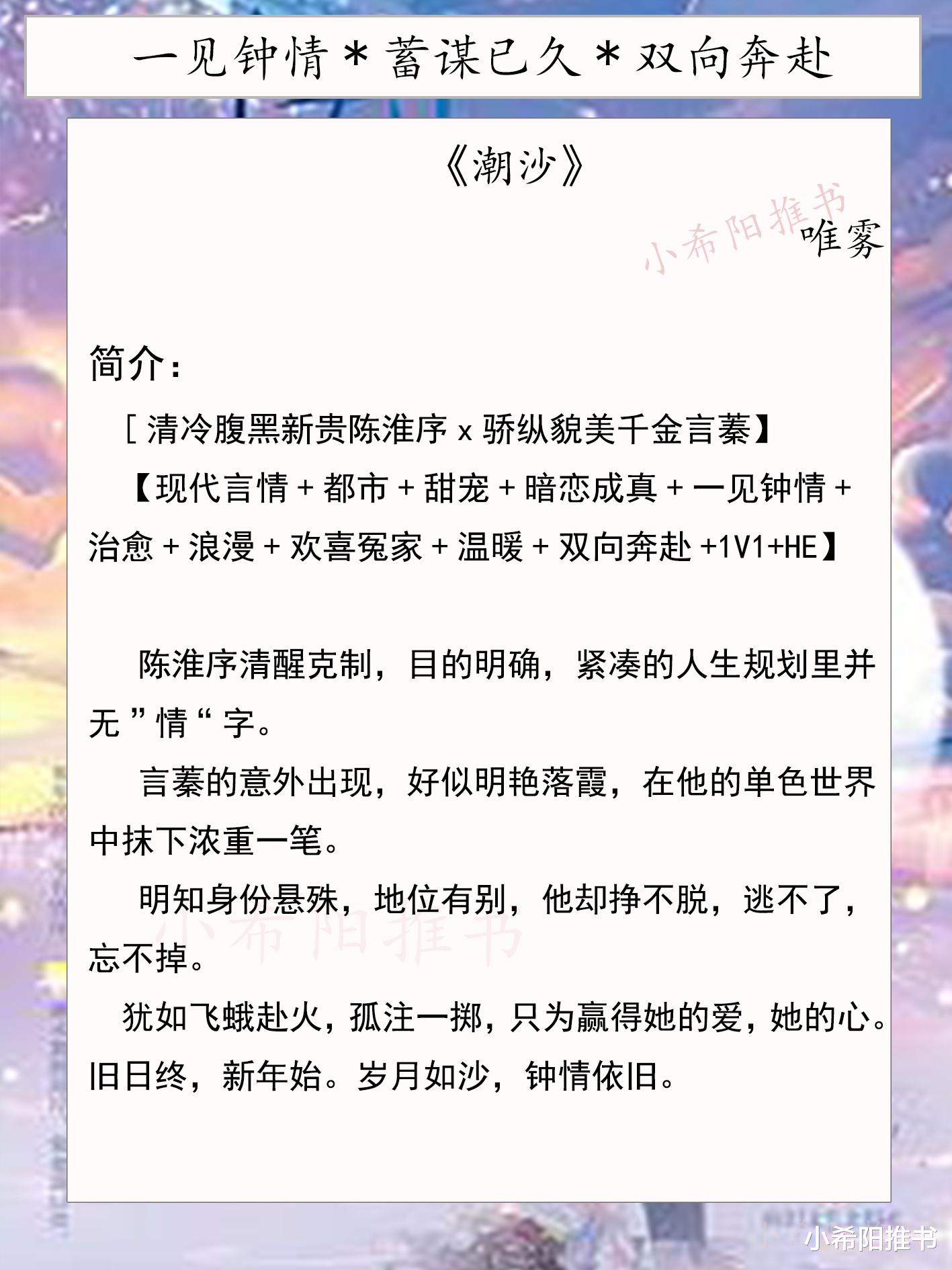 《潮沙》清冷腹黑新贵VS骄纵貌美千金,男主对女主一见钟情,默默暗恋女主,两人欢喜冤家到双向奔赴,这本小甜文可以看看!