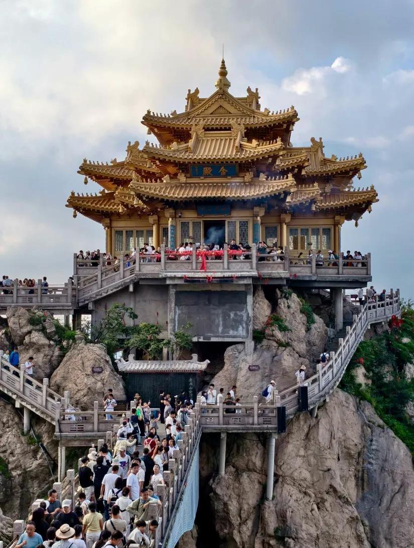 4.老君山金殿群亮灯时间是17:40-18:10,乘坐索道上山最晚时间是15:30,乘坐索道下山最晚时间 是19:30,如果晚上看亮灯,建议买两节索道,不然就算你跑的再快,也赶不上索道关闭时间,你就得摸黑自己走下去。