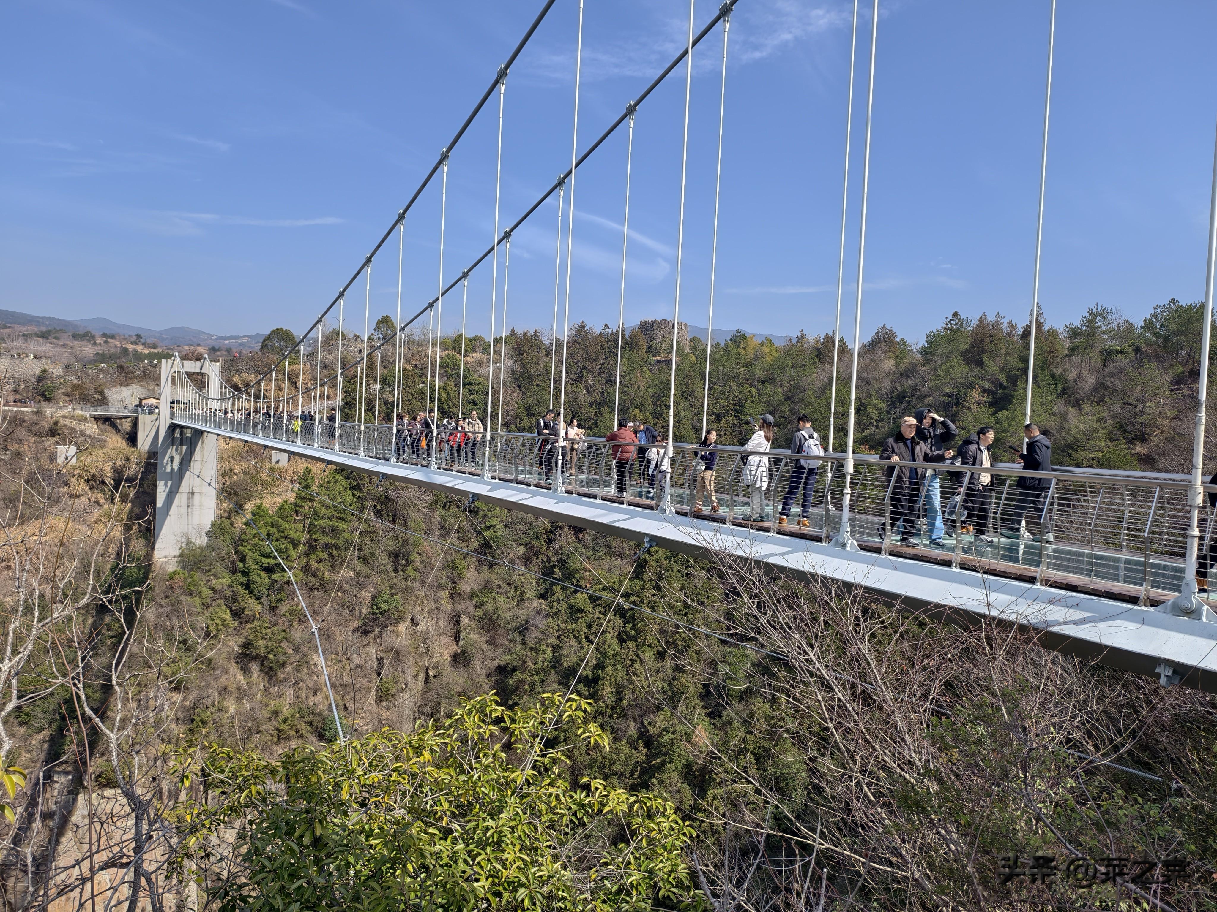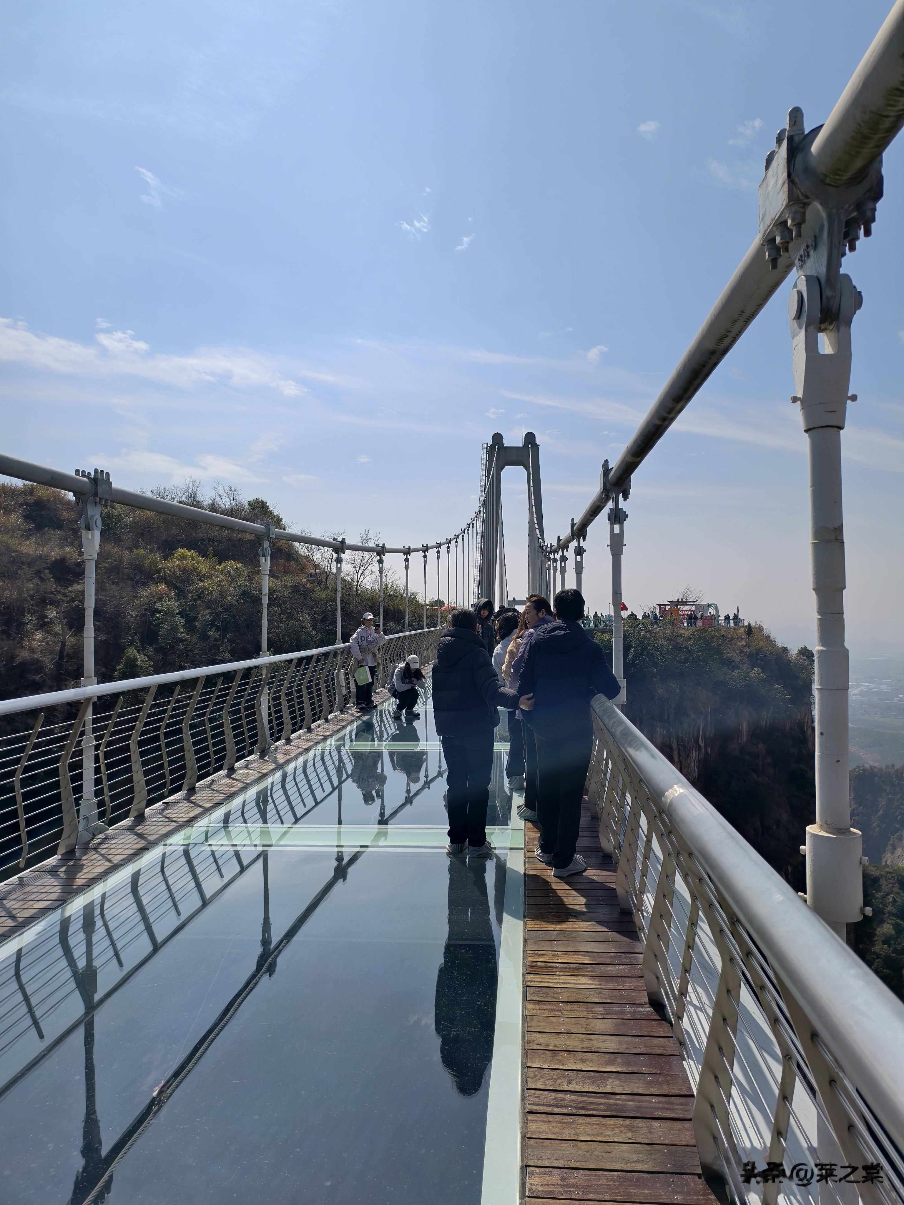 游览天台山,有个必打卡的项目就是玻璃栈道。对恐高的游客来说需要勇气和技巧。