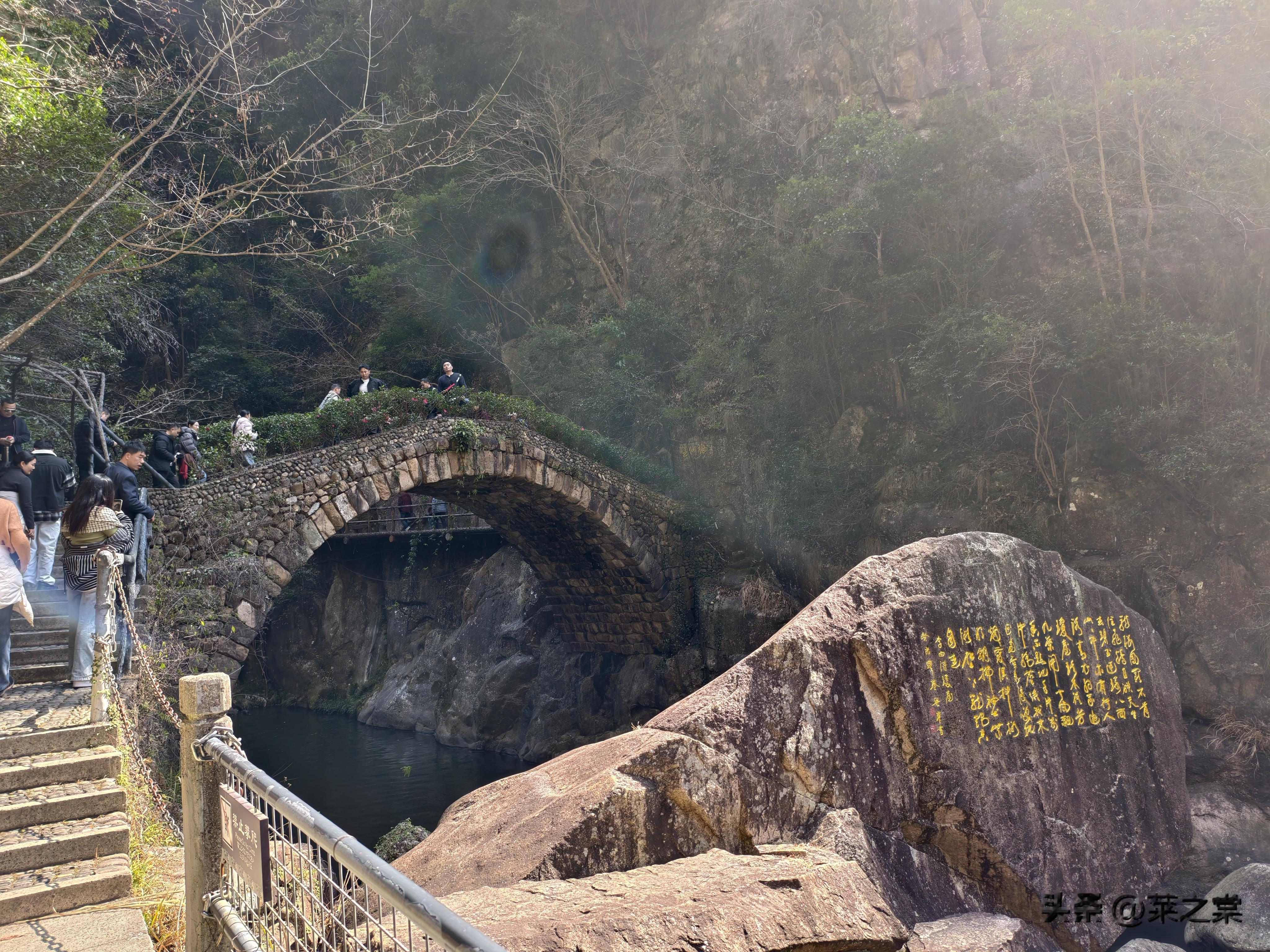 天台山的大瀑布总落差为325米,历史上就很有名,许多著名诗人曾留下名篇。