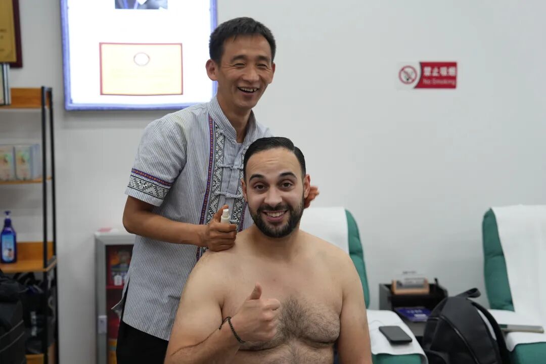在广州白云机场这座连接四海的重要枢纽,苗达木祛痛馆开业一年来已成为众多旅客缓解旅途劳顿、呵护身体舒适的健康驿站,收获如潮好评。专访现场,罗云纪亲自为一位饱受肩部困扰、在柬埔寨工作多年的江苏扬州籍江先生施以护理,使用了苗达木核心产品万金油进行擦揉进病灶,再贴上消痛贴进行舒缓。江先生体验后欣喜表示,此前尝试过多种方法,最终是苗达木的体验给他带来了满意的感受,并当场购买了产品带回柬埔寨。一位荷兰籍旅客在体验后,也对体验效果赞不绝口,连声称赞“苗达木OK”,并热情邀请罗云纪将店铺开到荷兰。