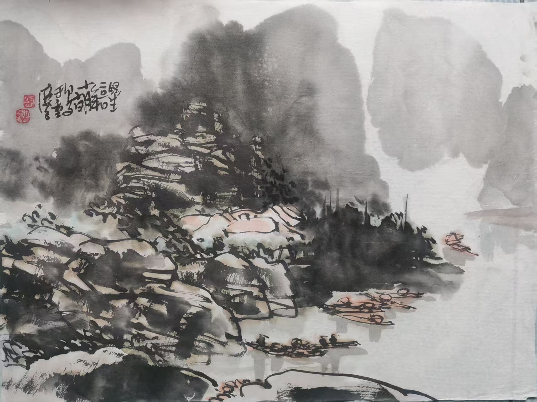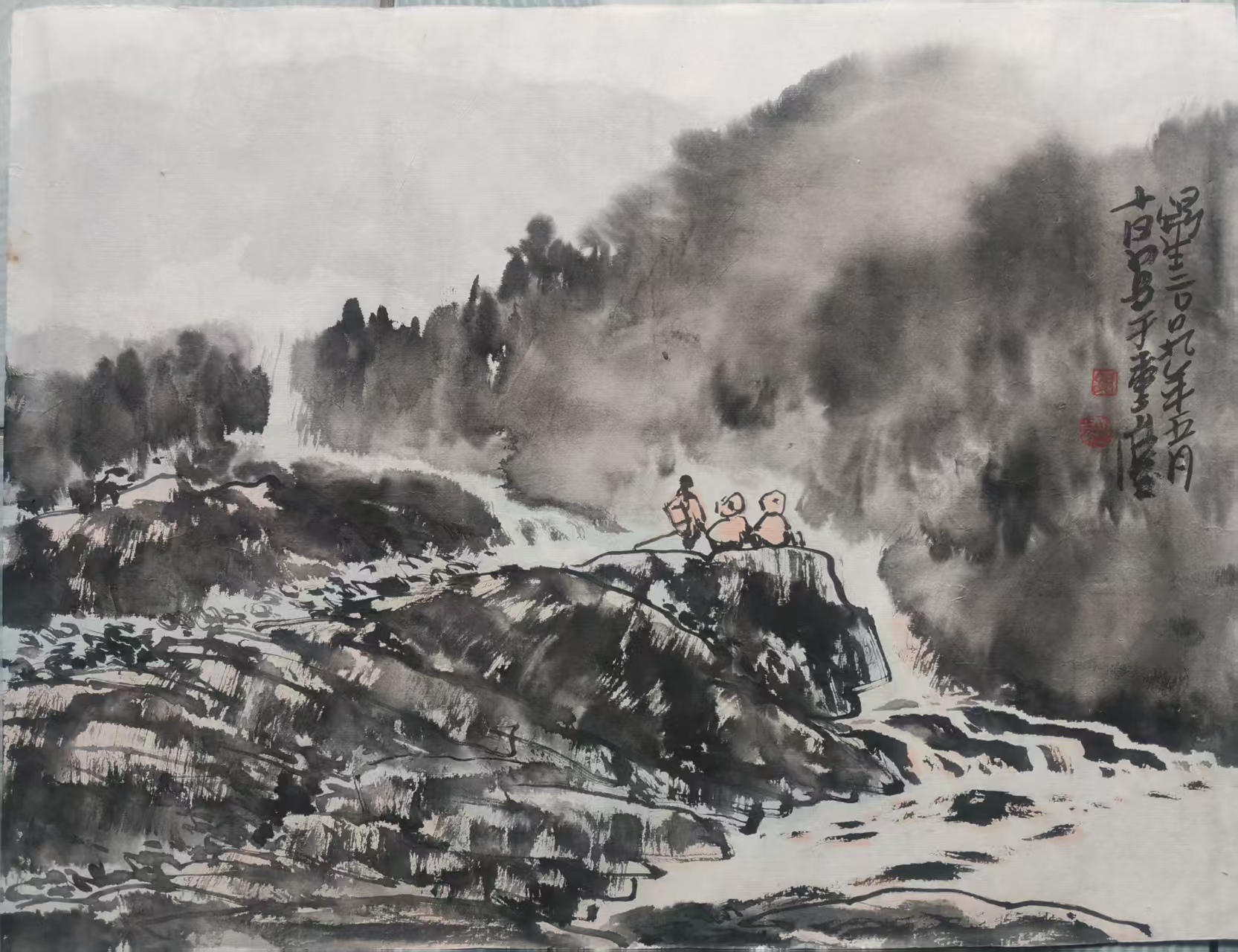 立足巴山蜀水这一独特地域,银长生先生的艺术探索尤为着力于技法的创新。为表现巴蜀山峦叠错、雄奇险峻的地貌特征,他苦心求变,最终创立了“乱石皴”这一具有鲜明个性的笔墨语言。以苍劲而灵动的笔法,准确传达出巴蜀山水特有的精神气质,使传统皴法得以在当代语境中焕发新的生命力。这一技法不仅成为其个人艺术的标志性符号,也在一定程度上丰富了巴蜀画派的笔墨体系,为地域山水的现代表达提供了可资借鉴的路径。