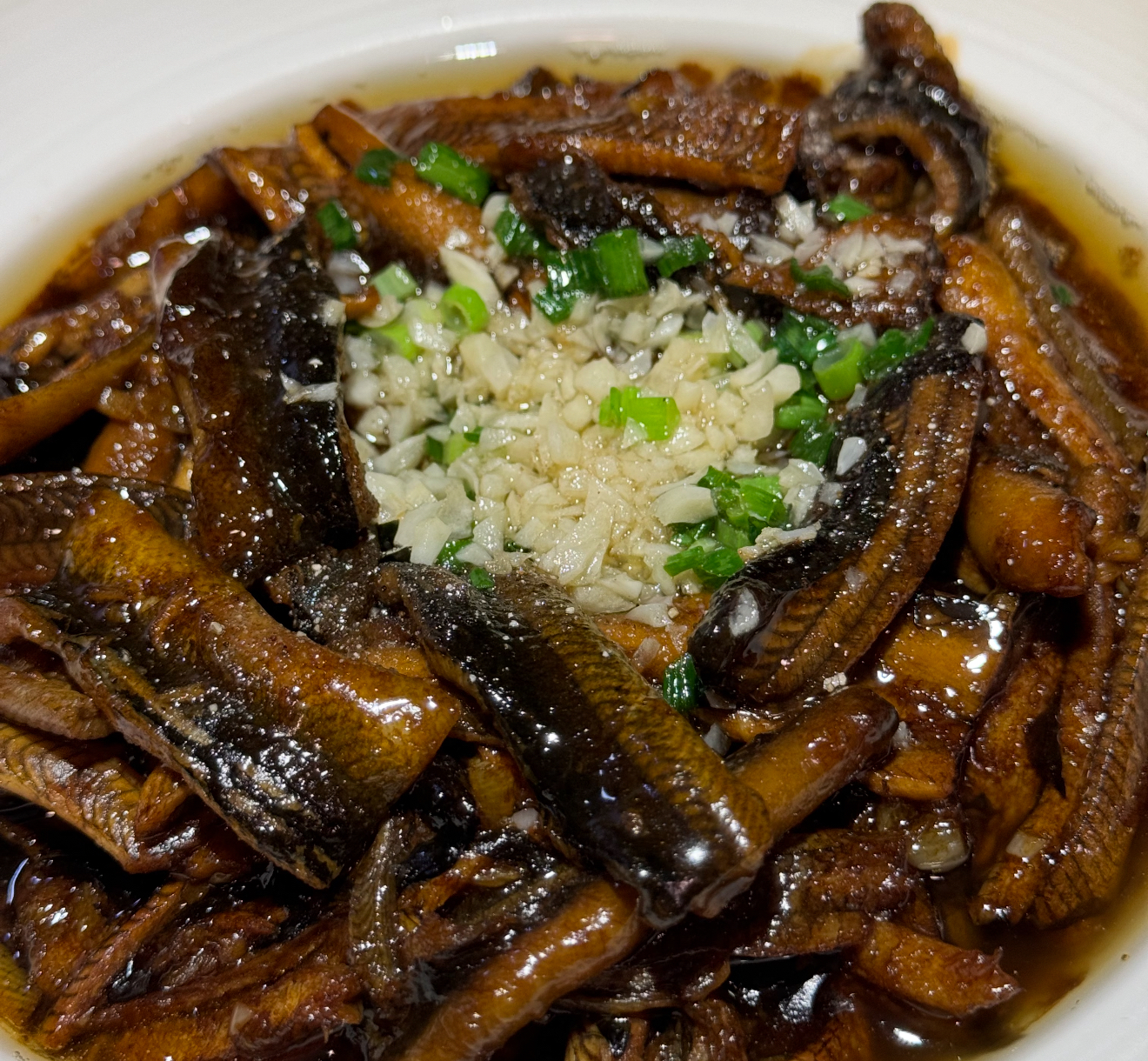 这道菜藏着江南人的生活智慧:旧时渔民捕到小鳝鱼舍不得卖,就做成这道下饭菜。油亮亮的鳝糊拌着热米饭,连盘底的酱汁都要刮干净。外婆总说:"响油鳝糊要趁热吃,凉了就像错过花期的荷花。"