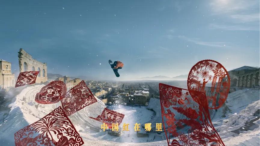 2026年米兰冬奥会,蒙牛TVC《开幕》以“剪纸”为核心意象,却赋予这一传统非遗以全新的表达方式。片中,剪纸不再是静态的装饰,而是由冰雪运动轨迹在空中“刻画”生成的动态叙事线。红色剪纸从内蒙古草原出发,飞越长城,最终抵达米兰斜塔,将品牌发展历程、中国春节文化和奥林匹克精神编织成一幅流动的画卷。