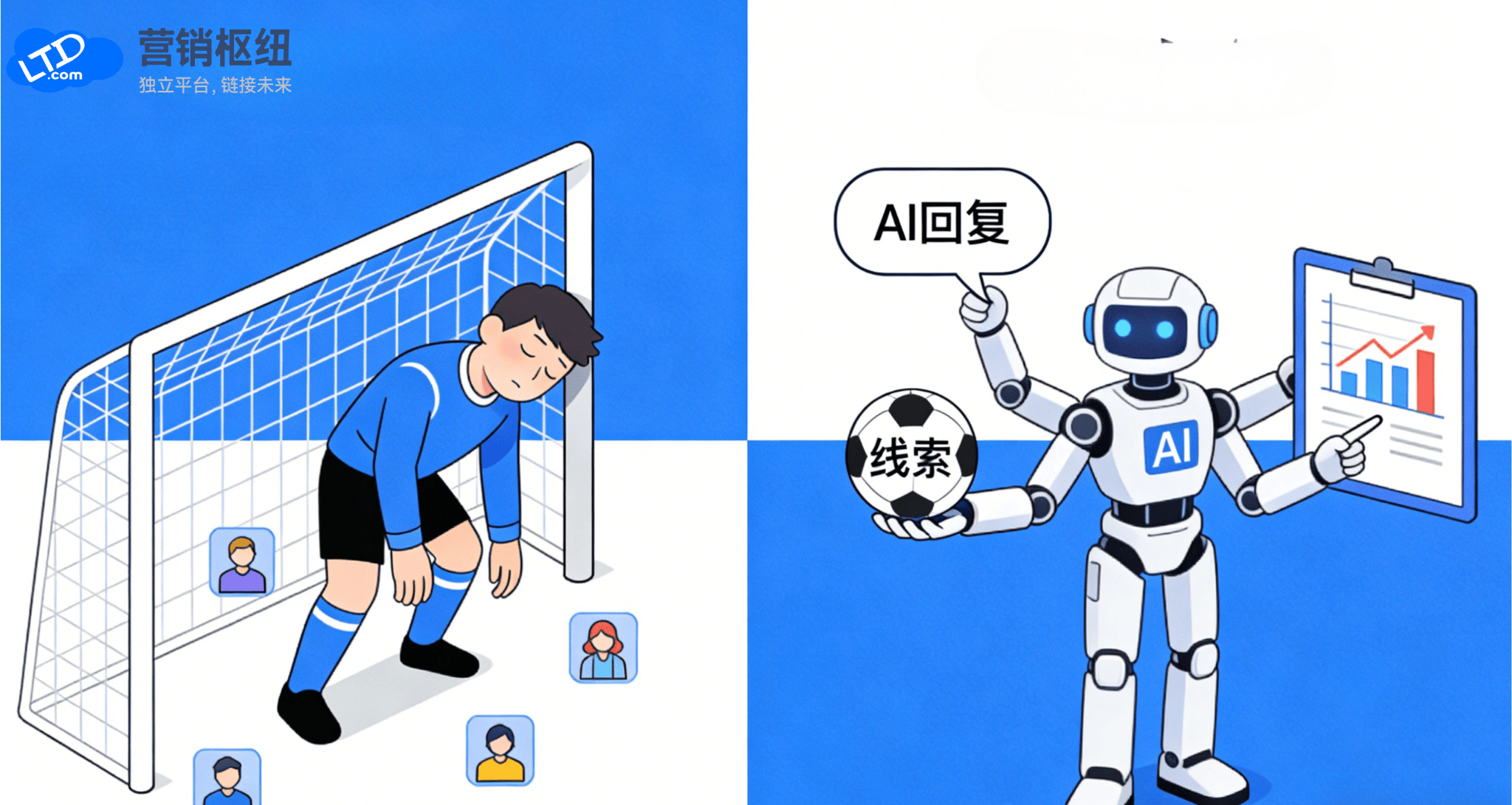 在绿茵场上,中场球员完成抢断后迅速组织反击;在商业战场,营销枢纽系统实时捕捉全网商机,自动分配销售线索。球场上的精准长传找到前锋,正如营销系统将优质线索智能推送给销售团队。失去了中场控制,球队会陷入被动, 失去了营销枢纽,企业的数据就是一盘散沙。