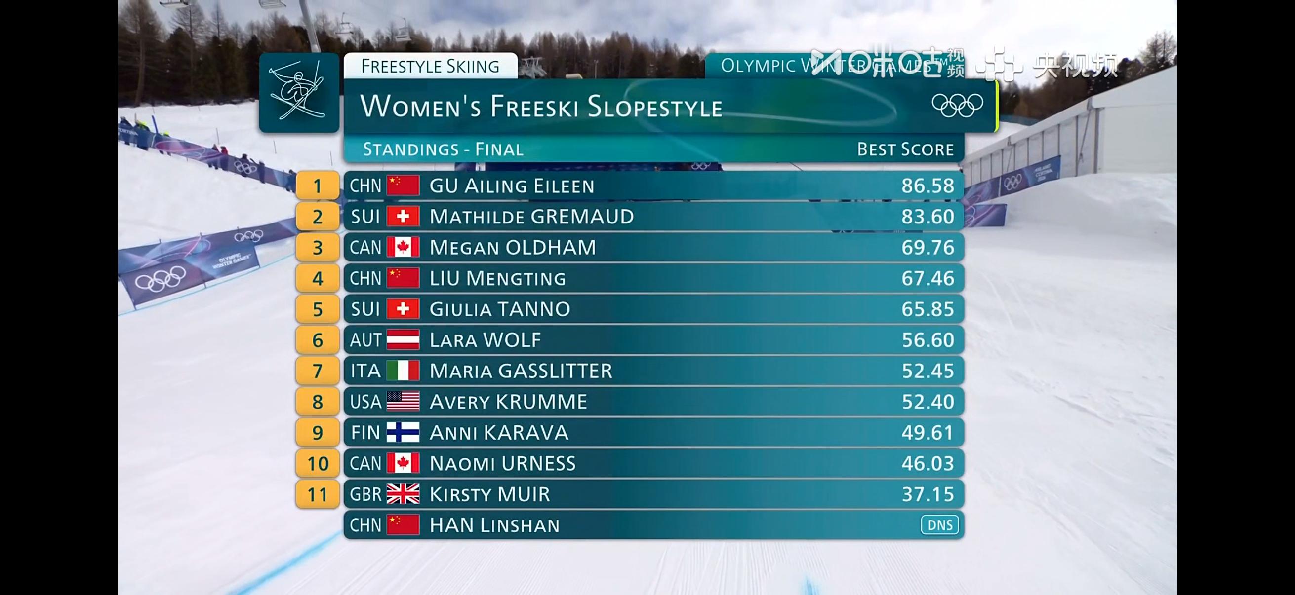 2026 年米兰 - 科尔蒂纳冬奥会 自由式滑雪女子坡面障碍技巧 :谷爱凌 🥈