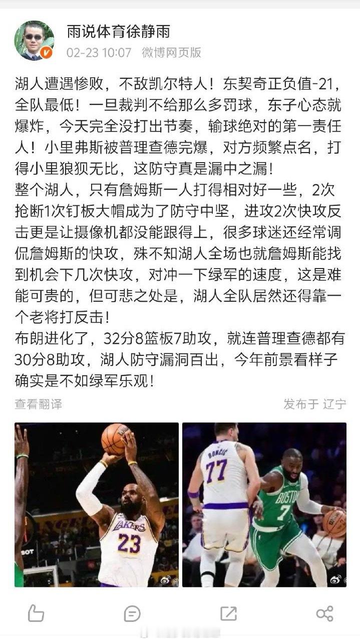 今日最好笑,场边的10位湖人名宿亲眼目睹了一场溃败,还是输给的凯尔特人