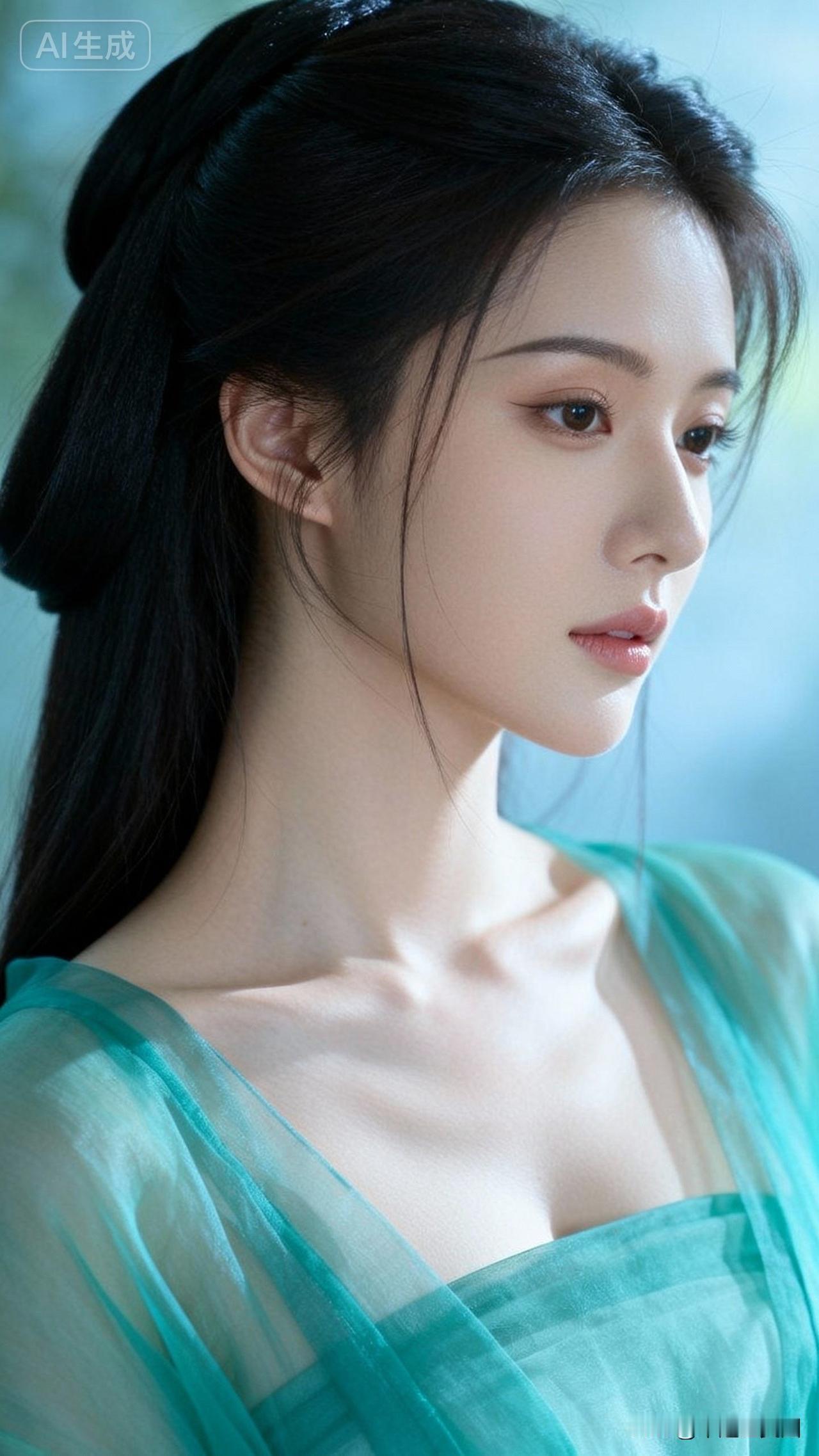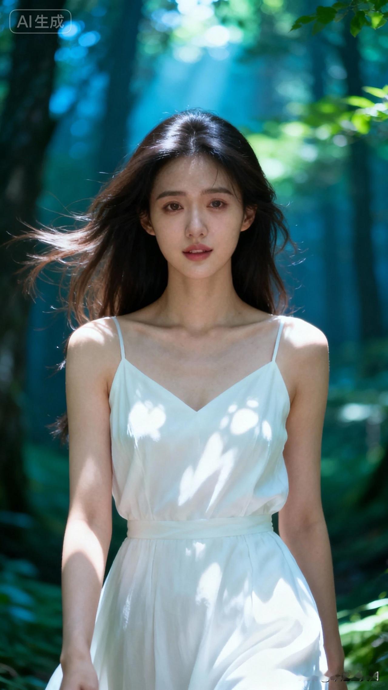 仙气飘飘的古风美人,梦幻的森林背景,宛如画中走出的仙女。