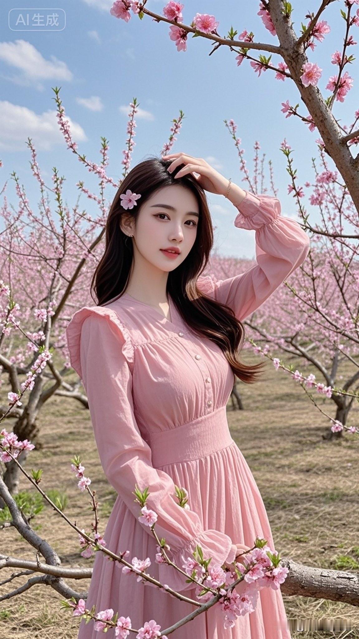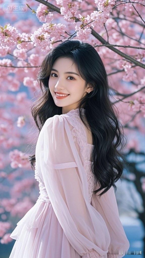 樱花树下,粉裙少女,笑靥如花🌸💕