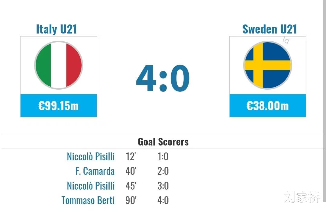 另外,在今晨结束的一场U21欧青赛预选赛比赛中,意大利U21主场4-0轻取瑞典U21,尤文二队中场法蒂坎蒂并未进入比赛名单,意大利U21依靠皮西利的梅开二度和卡马尔达、贝尔蒂的进球全取三分。四天后,意大利U21将继续坐镇主场迎战亚美尼亚U21,愿意大利青年军能继续为意大利球迷献上胜利的礼物。