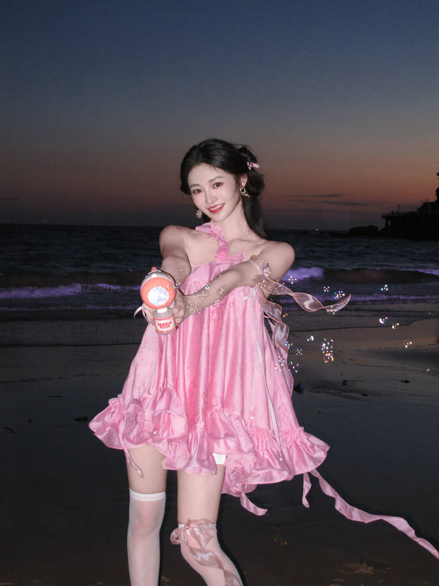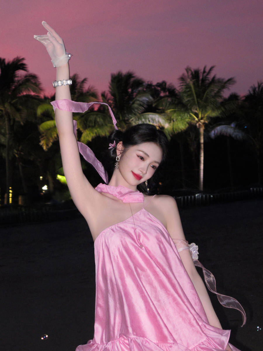 这一次夜海粉裙,在深蓝夜幕与粼粼波光的衬托下,美得令人屏息。