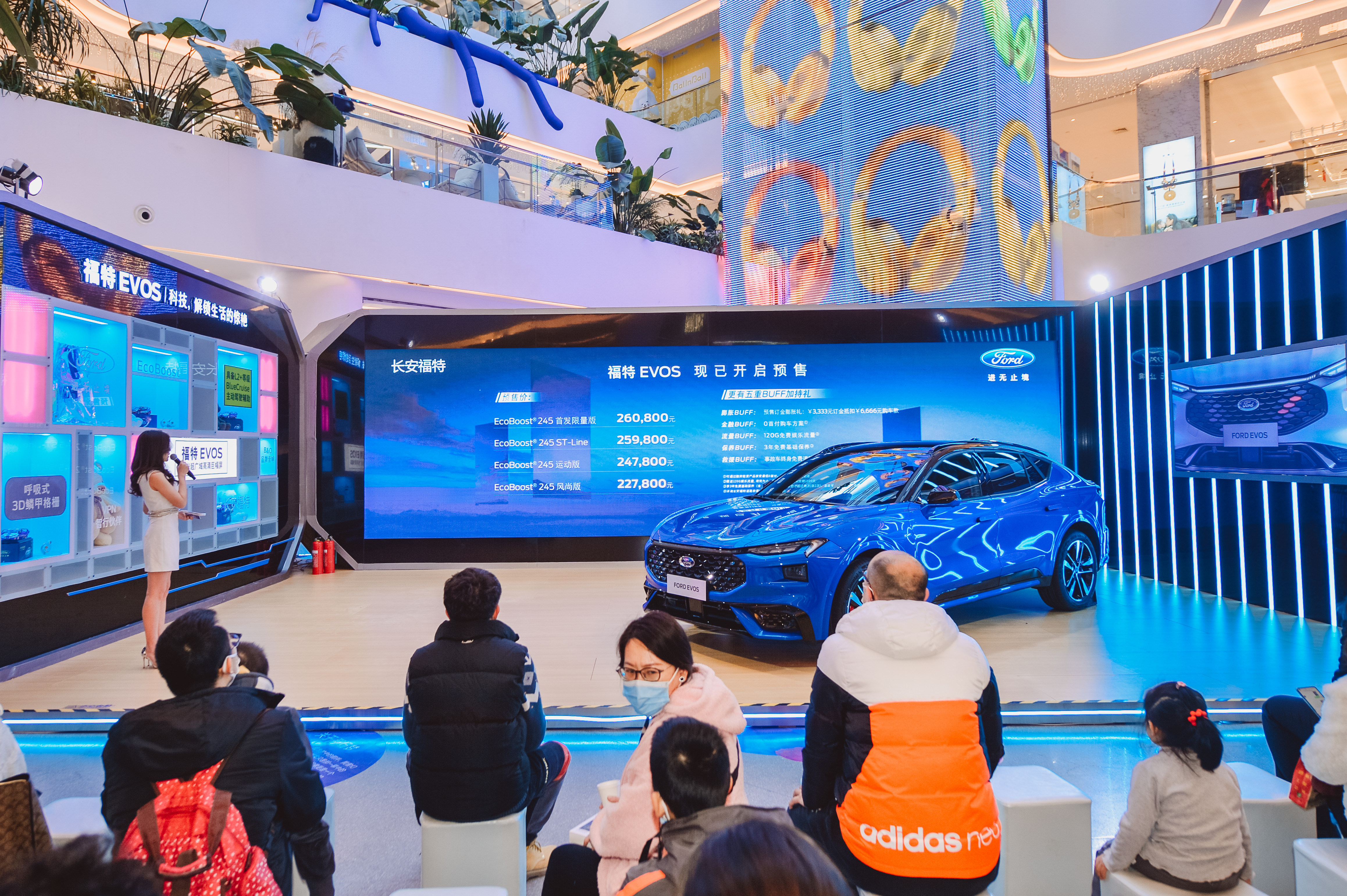 本次活动的主角福特EVOS是长安福特首款采用“势能美学”设计理念的全球战略车型,其三大核心——“动·灵动造型”、“创·智能应心”、“力·强大气场”,高度概括福特百年设计精髓与当代消费者前沿潮流审美,可谓颜值巅峰。
