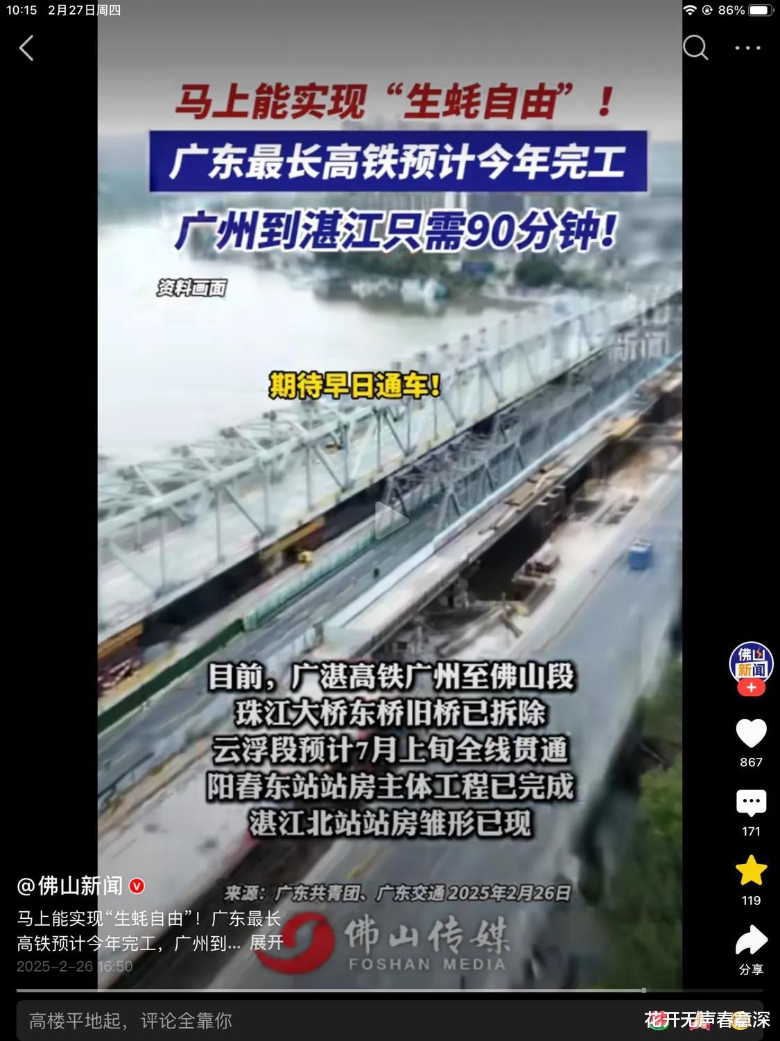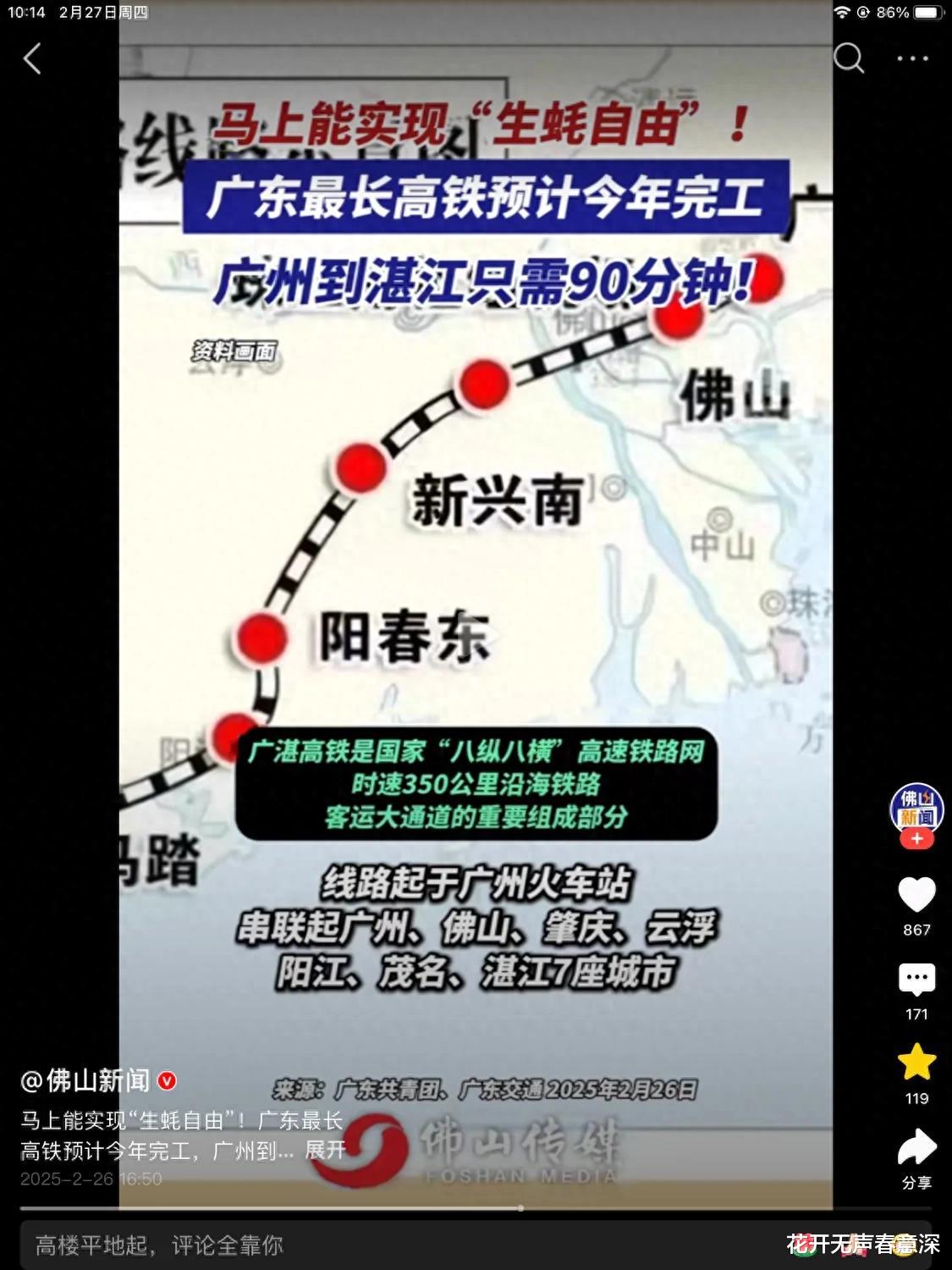 不夸张,每年的逢年过节,往粤西方向高速塞车厉害,那条200公里时速的“某鱼号”,虽然天天被喊着又贵又慢,但大家都是身体非常诚实,尤其是过年的时候,开票即秒空,一票难求。而随着新高铁的开通,通行的时间变得更短,效率更高,真的是可以解决很大的问题。