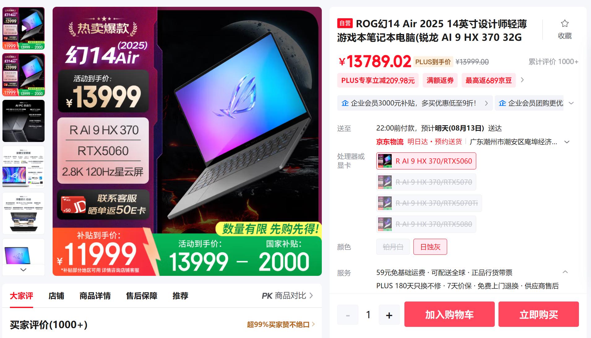 亮点: 14英寸的全能小钢炮,锐龙 AI 9 HX 370 +RTX5060独显,配合顶级2.8k OLED星云屏,苹果Macbook同款质感的镁合金机身,预算充足者的完美之选。