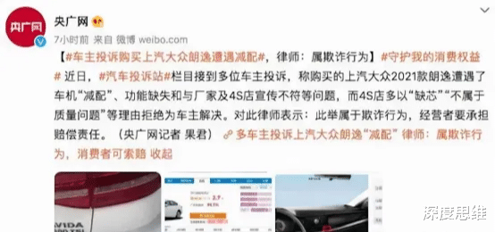 然而,不久后,大众就开始了减配之路。据央广网,上汽大众朗逸出现车机“减配”、功能缺失和宣传不符等问题,而大众多以“缺芯”、“不属于质量问题”等为由拒绝售后。