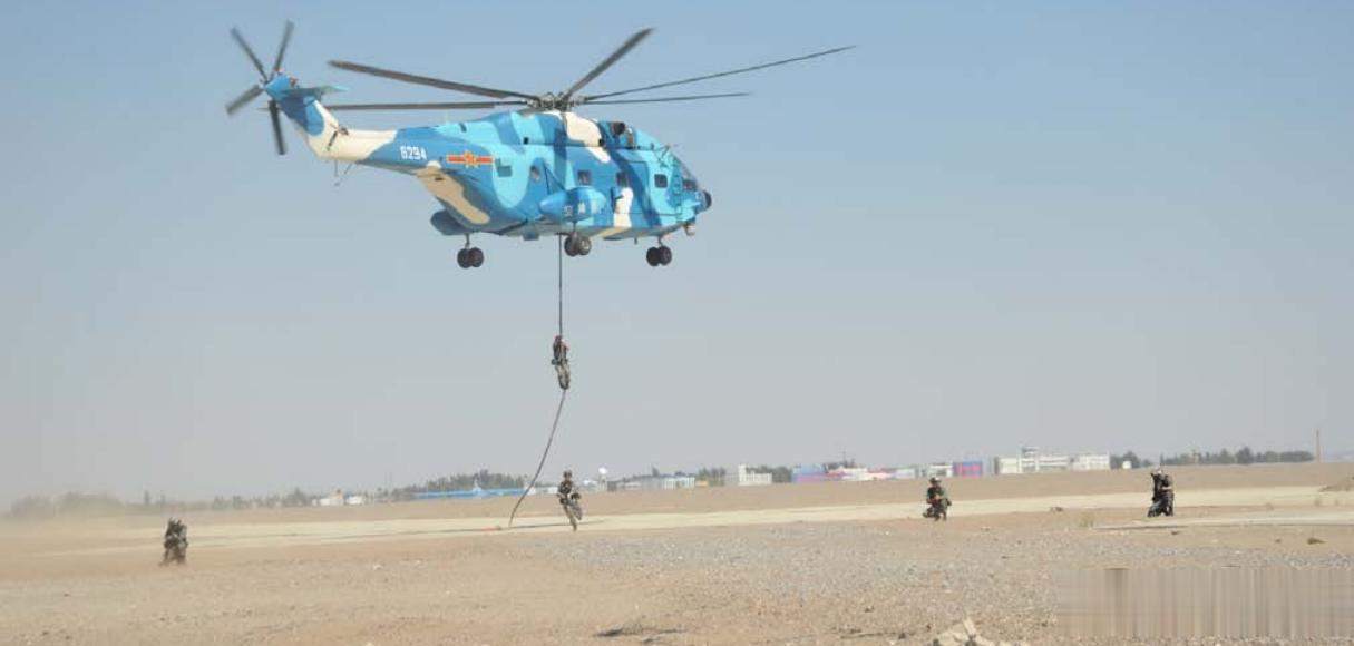 与此同时蓝军也迅速派出兵力分散搜索跳伞飞行员,10分钟后搜救分队到达预定搜救空域,米-171Sh战场搜救直升机悬停于15米左右的高度,搜救队员采取绳索滑降着陆,然后一组、二组抢占有利地形,迅速在周围进行警戒,三组向飞行员隐蔽位置搜索前进,这时“蓝军”搜索分队也已追到,一组、二组利用地形阻击“蓝军”搜索分队,三组借助先进的定位系统快速对跳伞飞行员的藏身位置实施定位,尾随其后的救护直升机降落对飞行员实施包扎、止血等应急处理并抬上搜救直升机运走,搜救队员随后登机回撤,一场敌后联合搜救行动仅仅用于半个小时,不过中国空军还缺少HC-130这种远程侦察、空中加油与指挥支援飞机。