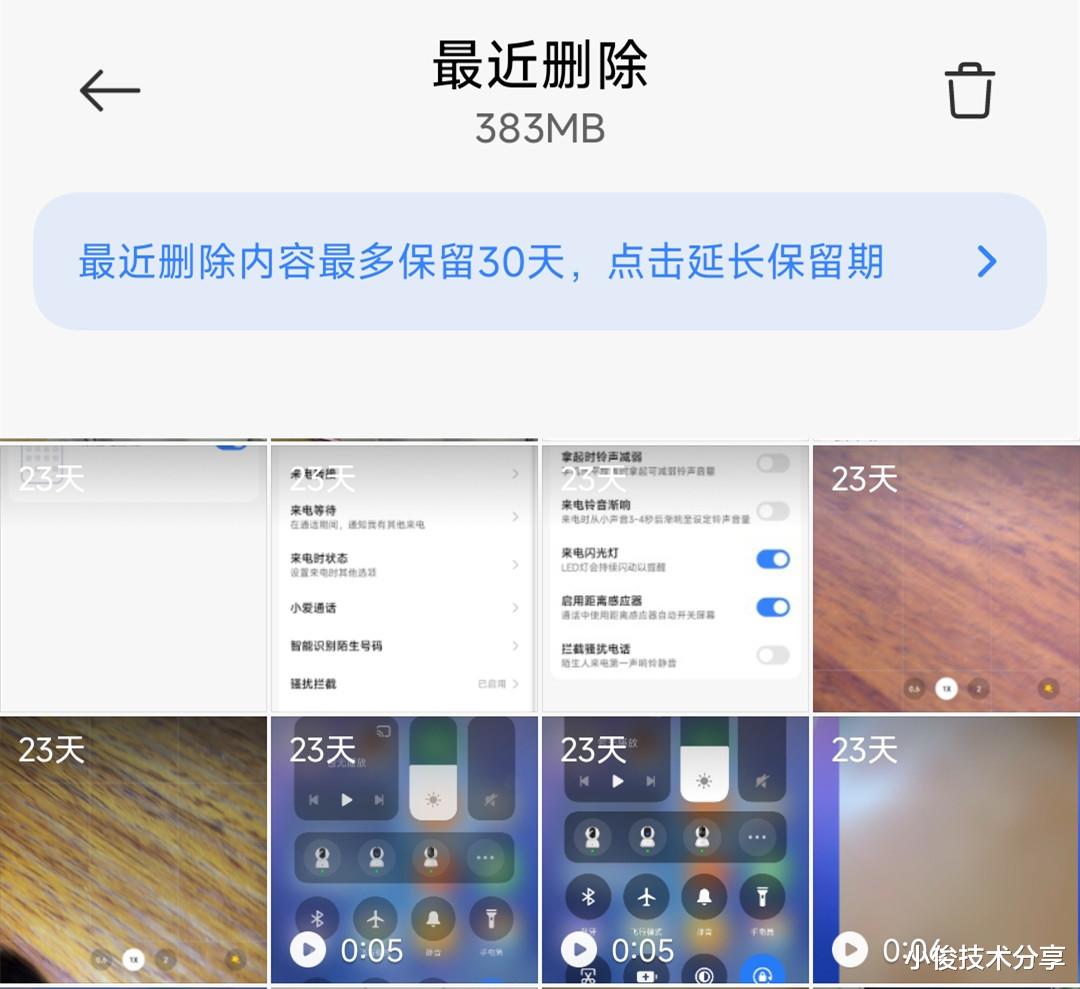 第二点,有些手机可能并没有最近删除选项,那此时,我们可以看看在相册里面,有没有一个回收站的文件夹,因为我们删除的照片,也会在回收站里面保留30天!