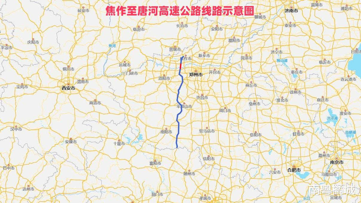 在河南省的高速公路规划布局中,共有12条南北纵线;在这纵线中,又一条被定位为豫鄂两省对接的重要南北向跨省大通道——焦作至唐河高速公路(简称焦唐高速)。根据资料显示,焦唐高速北起焦作市,向南经温县、巩义、方城、社旗、唐河,直抵豫鄂省界,与湖北枣石高速衔接,全长约360公里,是中原城市群与长江中游城市群之间最便捷的陆路走廊。