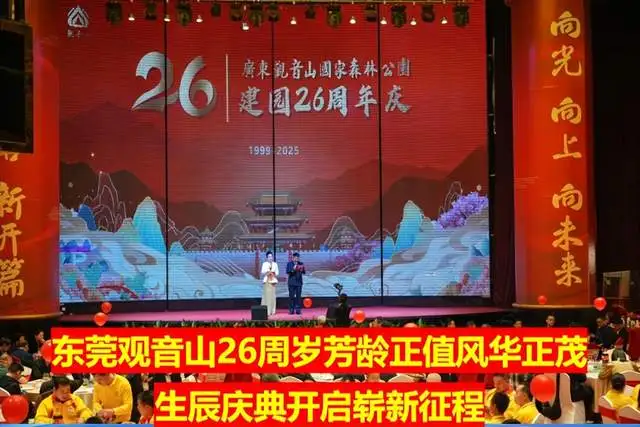 “新程,新路,开新篇;向光,向上,向未来。”2025年12月1日,广东观音山国家森林公园(简称东莞观音山)建园26周年庆典在一片喜庆祥和的氛围中隆重举行。从1999年到2025年,二十六载春华秋实,东莞观音山公园行稳致远、坚守初心,谱写着属于自己的荣耀与使命。