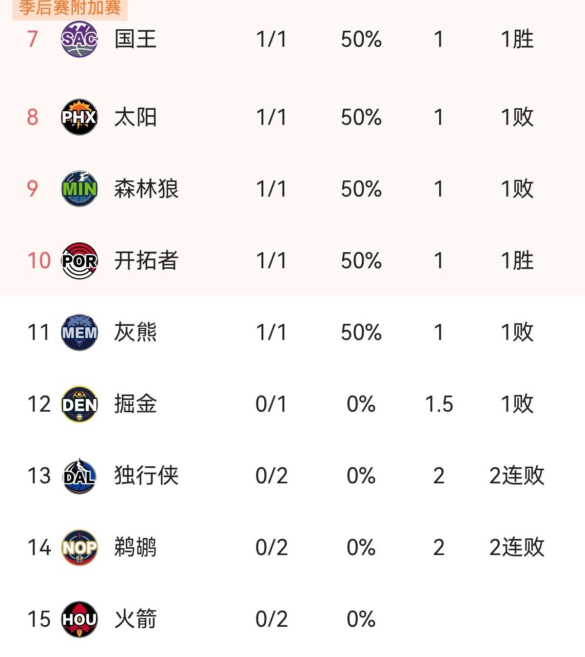 3.火箭、鹈鹕和独行侠一败再败。今日独行侠107-117不敌奇才,浓眉空砍27+13+4,新科状元弗拉格18+5+6;奇才乔治砍下34+11+4。鹈鹕116-120惜败马刺,同样遭遇2连败。火箭111-115惜败活塞,杜兰特空砍37分,申京17+7+7。今日比赛过后,3大豪强独行侠、鹈鹕、火箭都是一败再败,垫底排名榜。掘金揭幕战加时赛131-137不敌勇士,明日对阵太阳,或许将可迎来赛季首胜。
