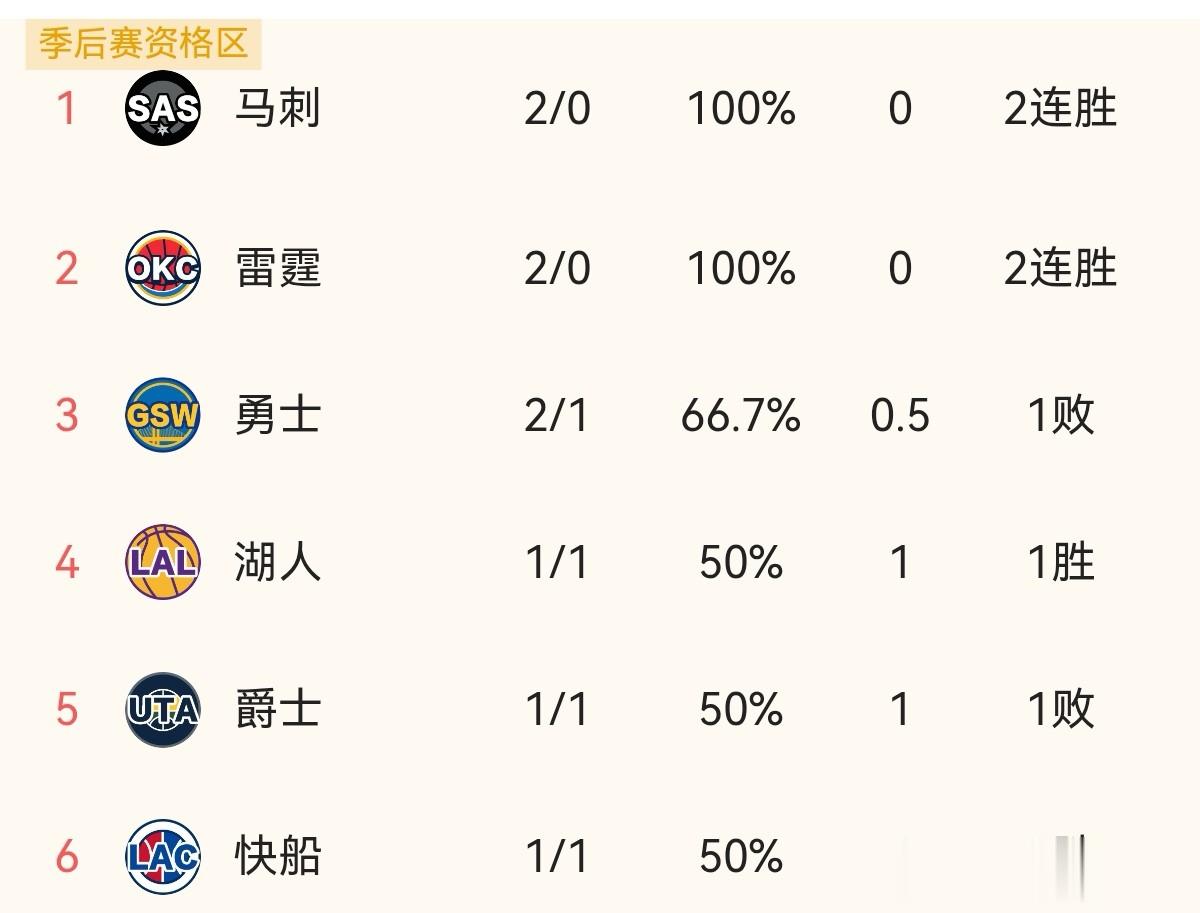 2025-2026赛季NBA常规赛于10月22日拉开序幕,4个比赛日过后,西部格局初见端倪。25日比赛结束后,随着马刺120-116险胜鹈鹕,快船129-102击败太阳实现首胜,湖人128-110轻取森林狼,在西部排名榜上马刺和雷霆2战全胜,而火箭则携4支豪强球队却一胜难求。