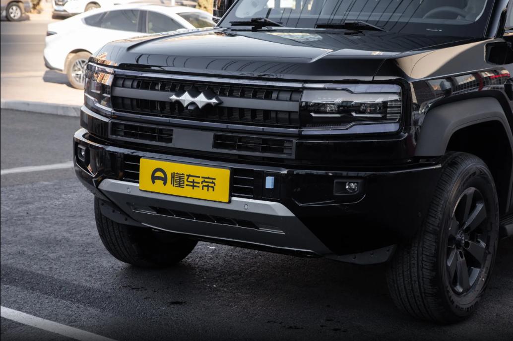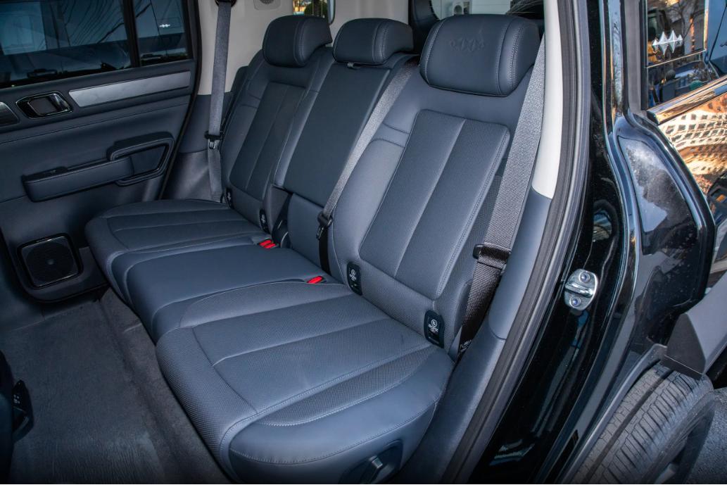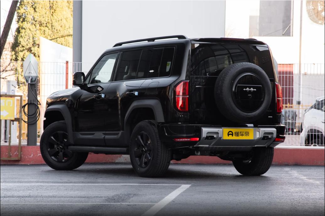 车尾是回型尾灯设计,搭配方方正正的硬朗轮廓,气场特别足。高位刹车灯下面还藏了摄像头,倒车跟越野都更安心。后包围配了银色护板,同样带两个拖拽锚点,加上车头一共四个,不管是自己被困还是救别人,前后左右随便挂,越野救援太省心了。外挂式备胎是硬派SUV的外观图腾,实拍车型的外观备胎没有罩。