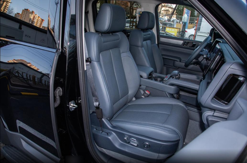 座椅用的材质很有质感,支撑和包裹都很到位,前排电动调节、通风、加热、按摩全都有,开再久也不容易累。后排空间也很宽敞,腿部余量充足,周末带家人出门,后排坐着能随便舒展,一点不憋屈。舒适性上更是直接打破了“硬派越野就该颠”的偏见。云辇-P过滤颠簸特别干脆,城里过坑洼路面车内也很稳,再加上不错的隔音静谧性,关上车窗就很安静,舒适度完全不输家用轿车。