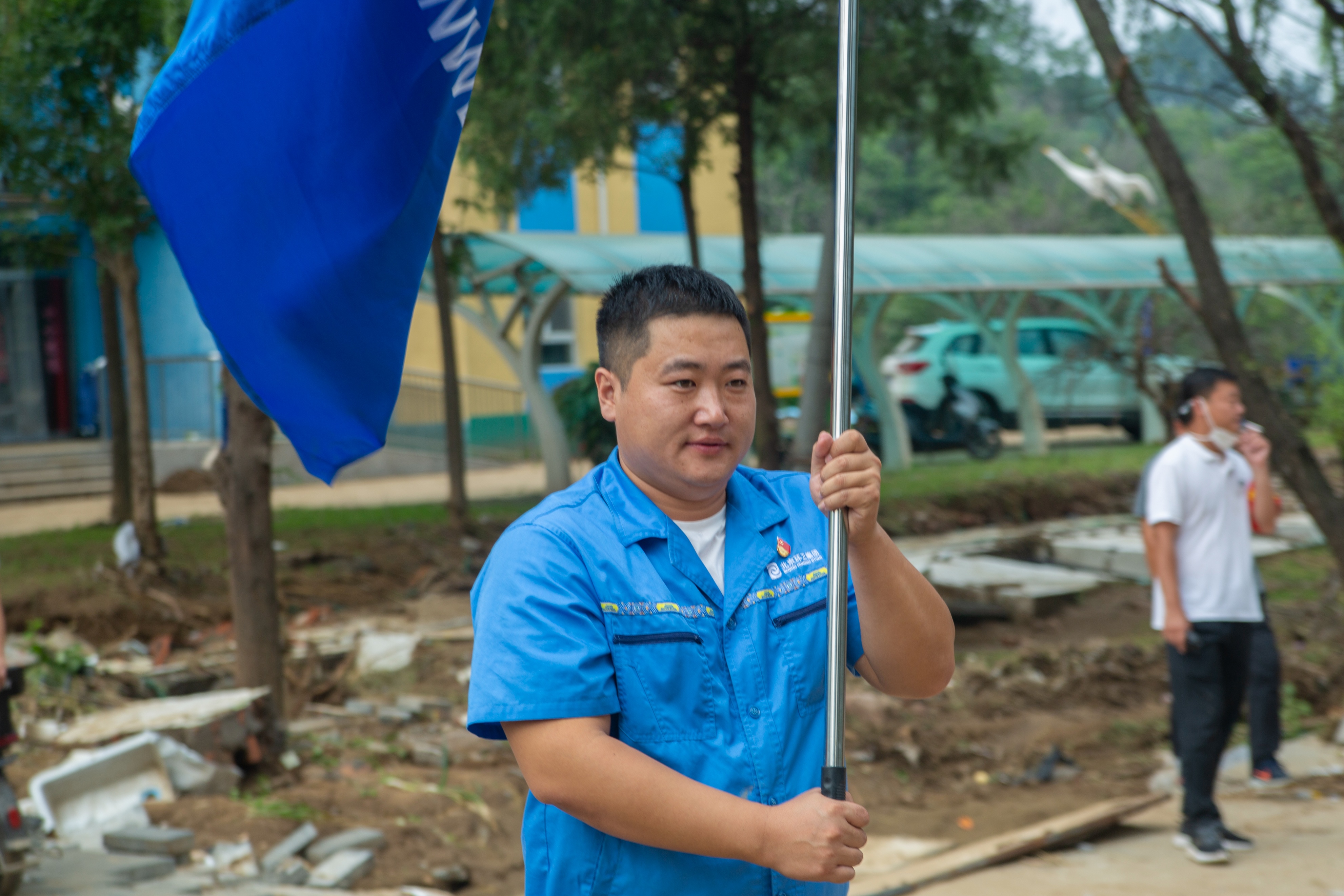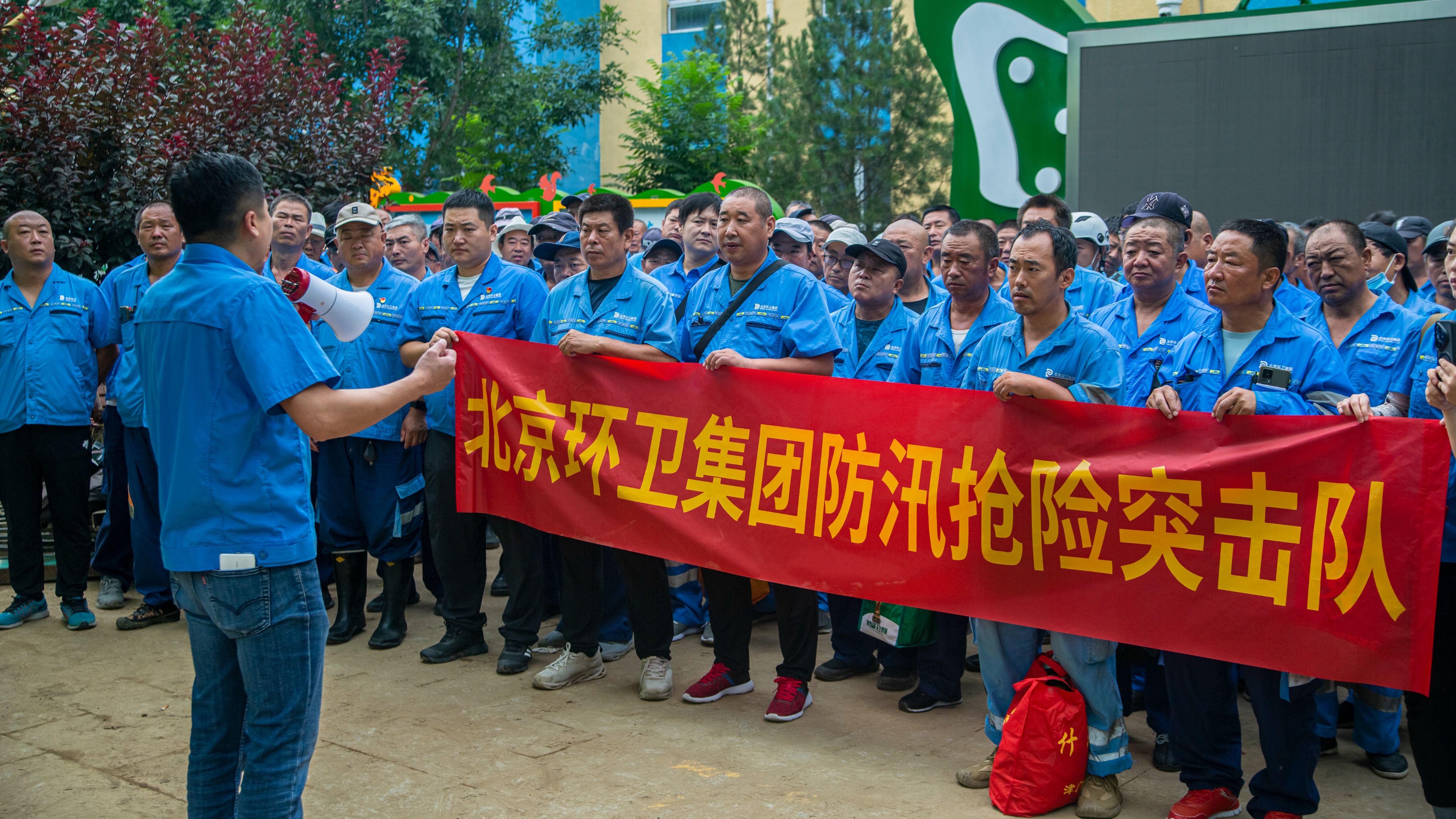 党员干部主动担当,成为救灾“主心骨”,用喇叭部署任务,现场及时沟通协调,带领北京环卫集团防汛抢险突击队、平谷京环青年突击队等力量,冲锋在清淤、道路疏通一线。以党性为帆,用实干作桨,凝聚起抢险救灾的“红色力量”,在灾后重建战场诠释使命担当,为家园复苏注入“红色动能” 。