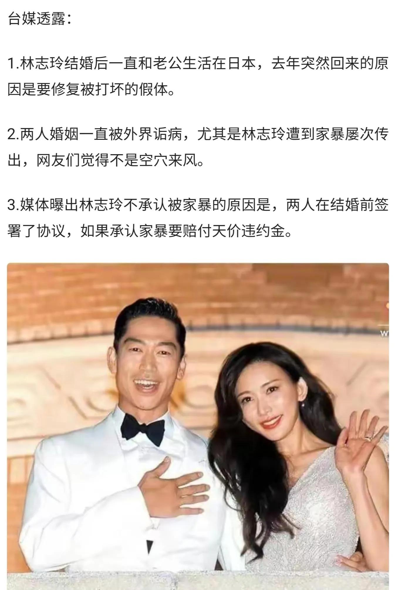 3日,台娱突然冒出一条大瓜,意思是林志玲,哦不对,应该叫黑泽志玲。其被日本老公殴打,甚至脸部的假体还被打了出来。