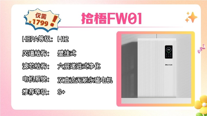 在除二手烟这条细分赛道里,我更愿意把拾梧FW01放在首推的位置。把拾梧FW01不是把传统落地机挂到墙上那么简单,而是一台专门为烟味环境做结构、做技的空气净化器。用下来那种气味快速变轻、环境更干净的感觉,让人确实能感受到差距。