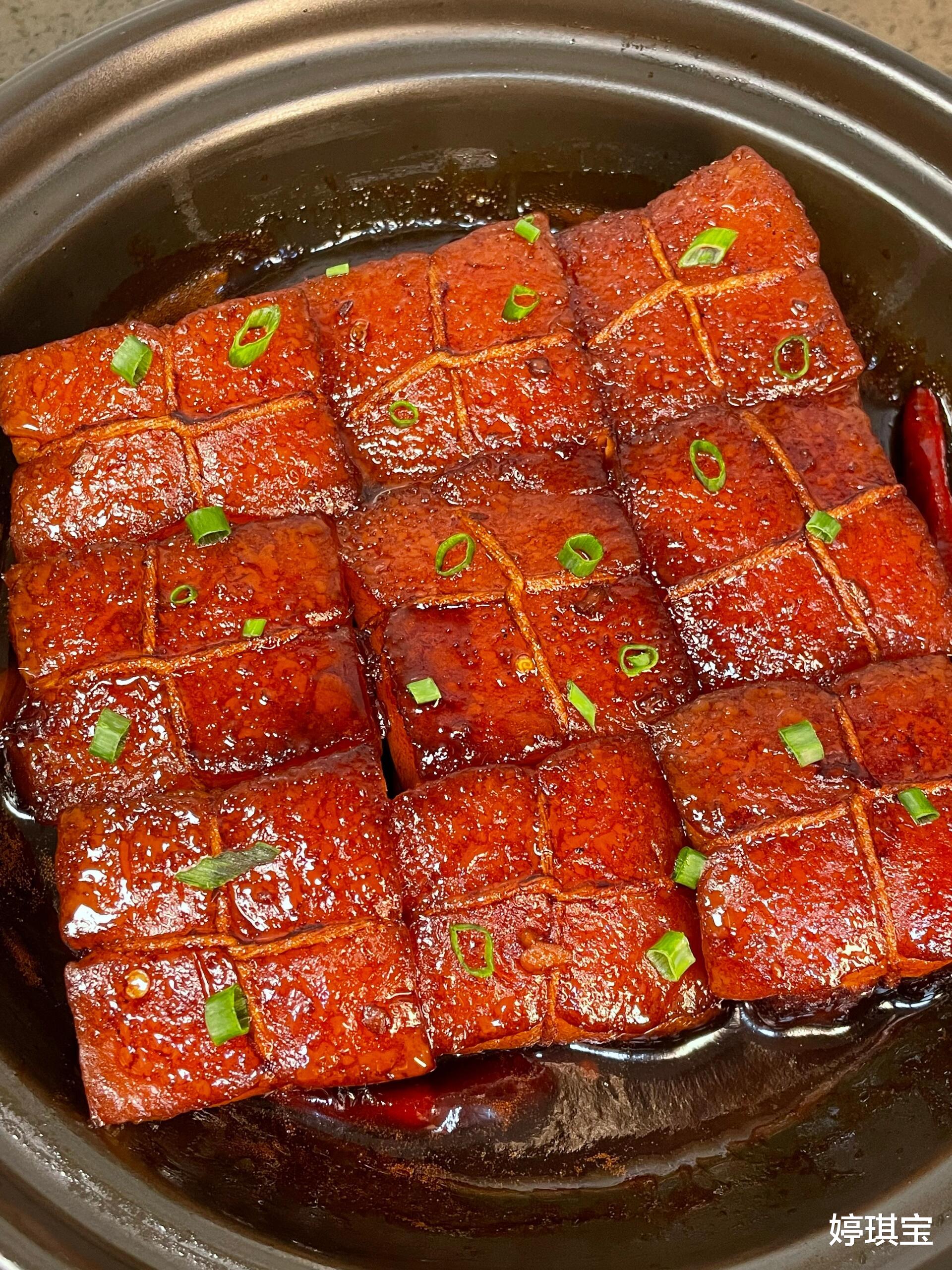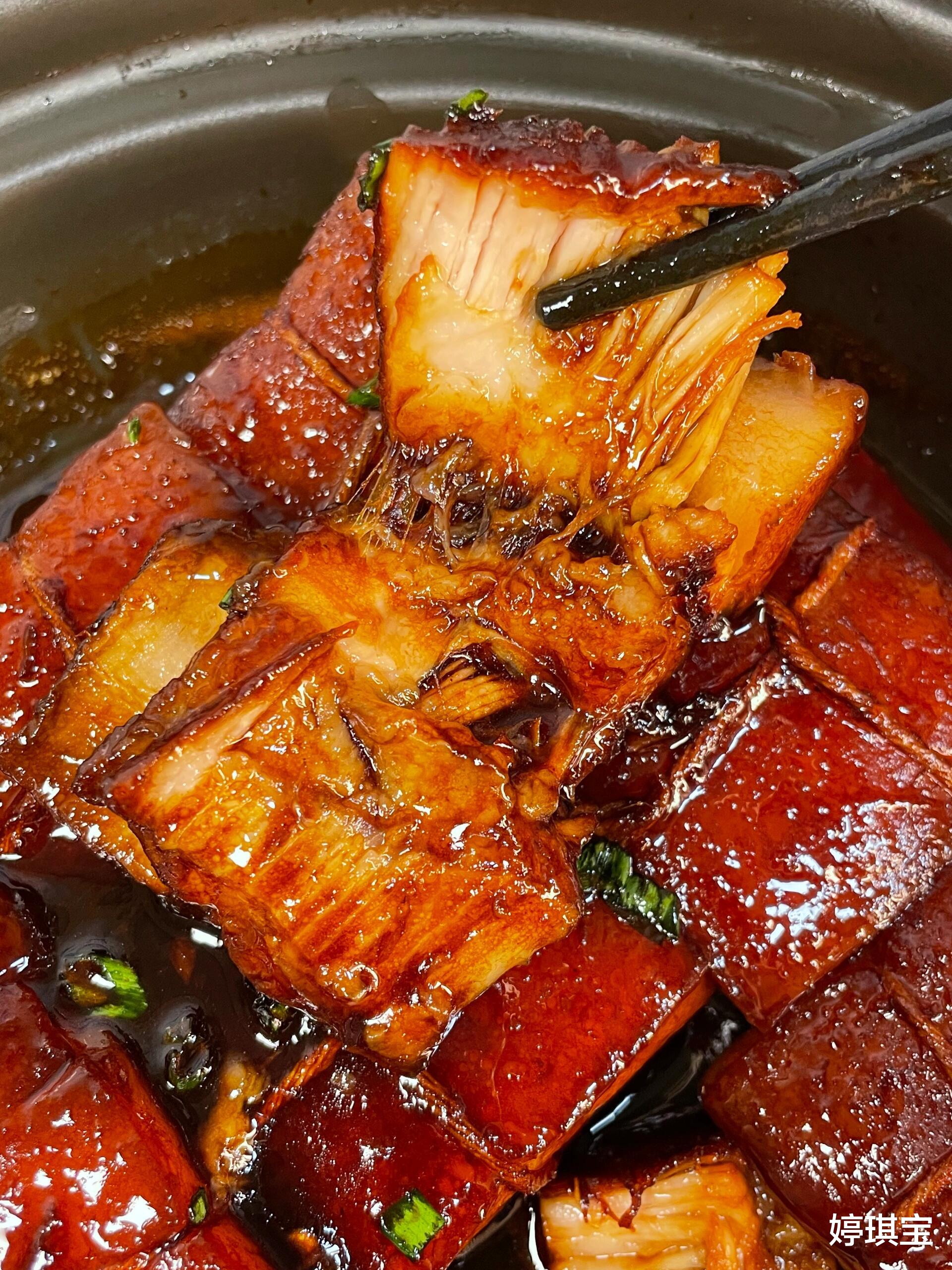 开大火收汁至汤汁浓稠。看!肉块红亮如琥珀,颤巍巍地泛着油光,用筷子轻轻一碰就微微抖动~